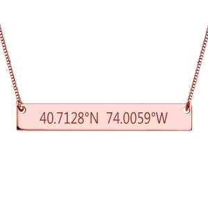 La barra con coordenadas inscritas es sencilla pero elegante y con clase, puede llevarse cada día. ¡Yo nunca me quito la mía! No puedes fallar con este. Es el colgante perfecto para mostrar la latitud y longitud de su ciudad natal, tu universidad, tu ciudad favorita y mucho más. Este colgante de coordenadas también es el regalo perfecto para un amigo, niño, dama de honor o alguien especial.