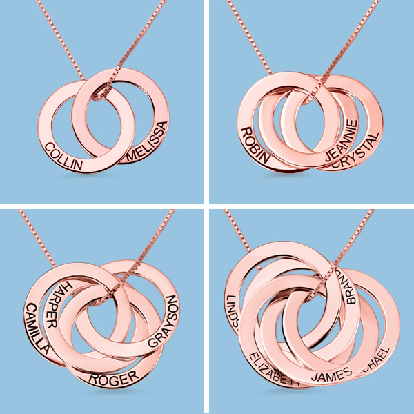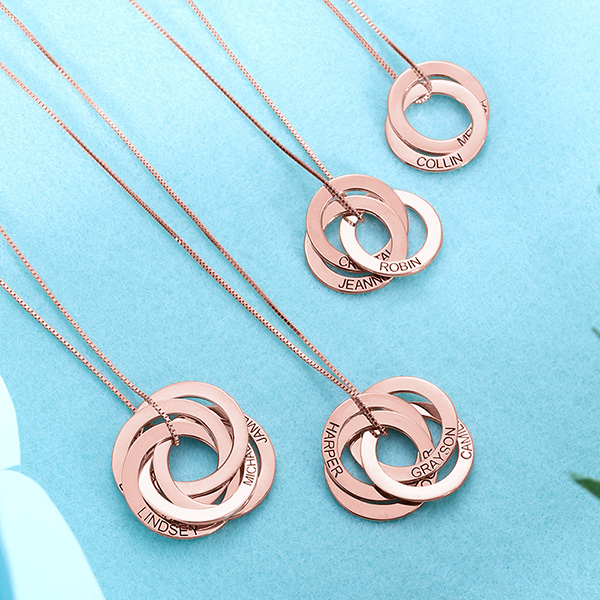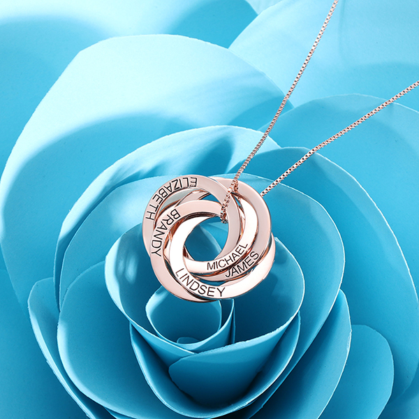 Este collar de anillo ruso es una pieza atemporal para apreciar y una hermosa adición al atuendo diario. Grabado con nombres o cualquier cosa especial para usted o el destinatario del collar sencillo y delicado. Cada anillo se martilla suavemente para lograr un acabado liso y se unen entre sí, presentando una conexión y un amor inquebrantables.