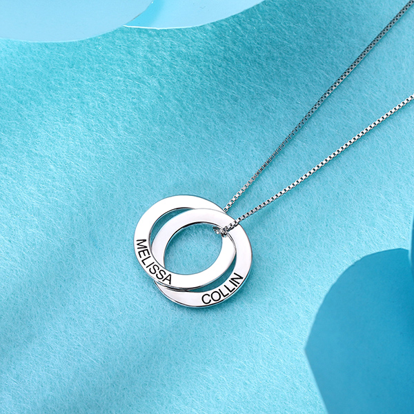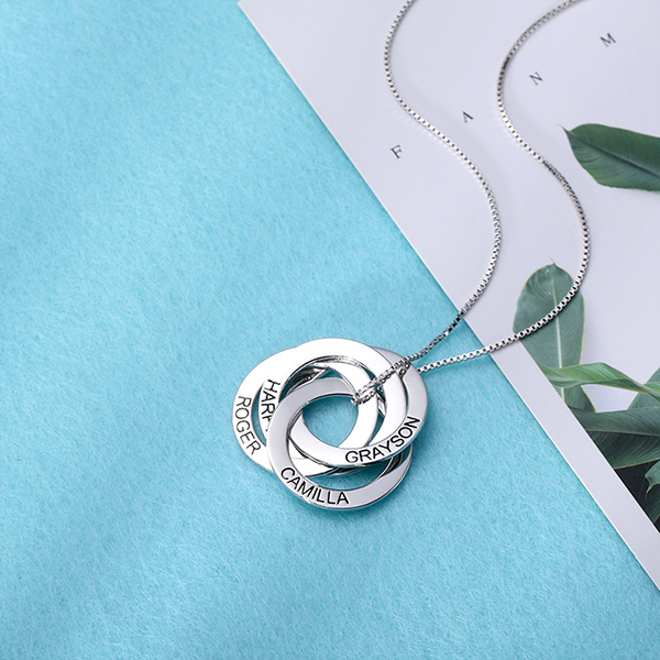 Este collar de anillo ruso es una pieza atemporal para apreciar y una hermosa adición al atuendo diario. Grabado con nombres o cualquier cosa especial para usted o el destinatario del collar sencillo y delicado. Cada anillo se martilla suavemente para lograr un acabado liso y se unen entre sí, presentando una conexión y un amor inquebrantables.
