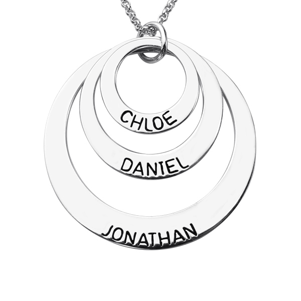 Colgante de disco con 3 nombres inscritos para madres en plata de ley