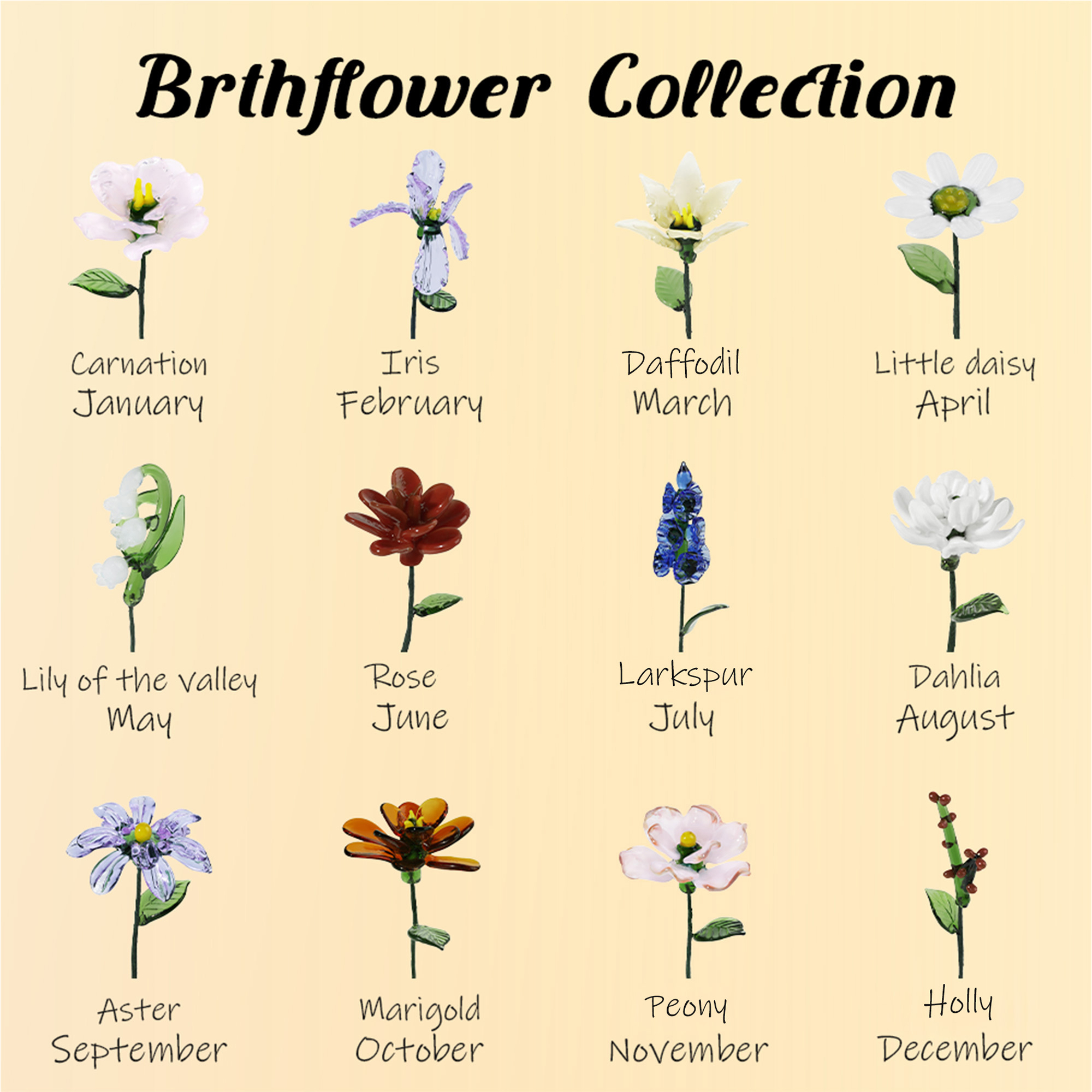 Significado del diseño : Este ramo de cristal hecho a mano realza la flor y la hoja de nacimiento que elijas, añadiendo un toque delicado y elegante. Cada tallo tiene su propio significado, convirtiendo esta pieza en un pequeño símbolo de amor, recuerdos e historias personales.