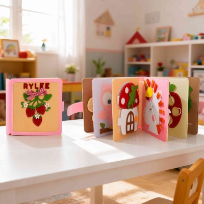 Libro sensorial de animales personalizado con nombre de bebé, libro de actividades de fieltro suave inspirado en Montessori, juguete de viaje, regalo de baby shower o cumpleaños para niños pequeños.
