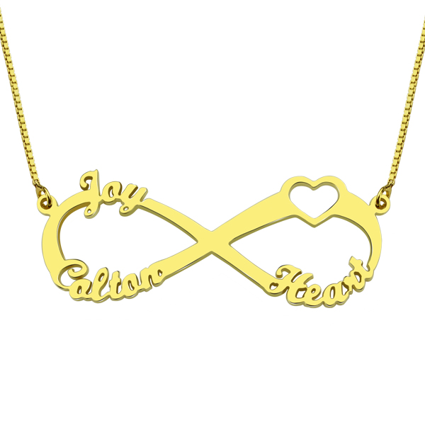 Colgante infinito 3 nombres y 1 corazón chapado en oro de 18 quilates
