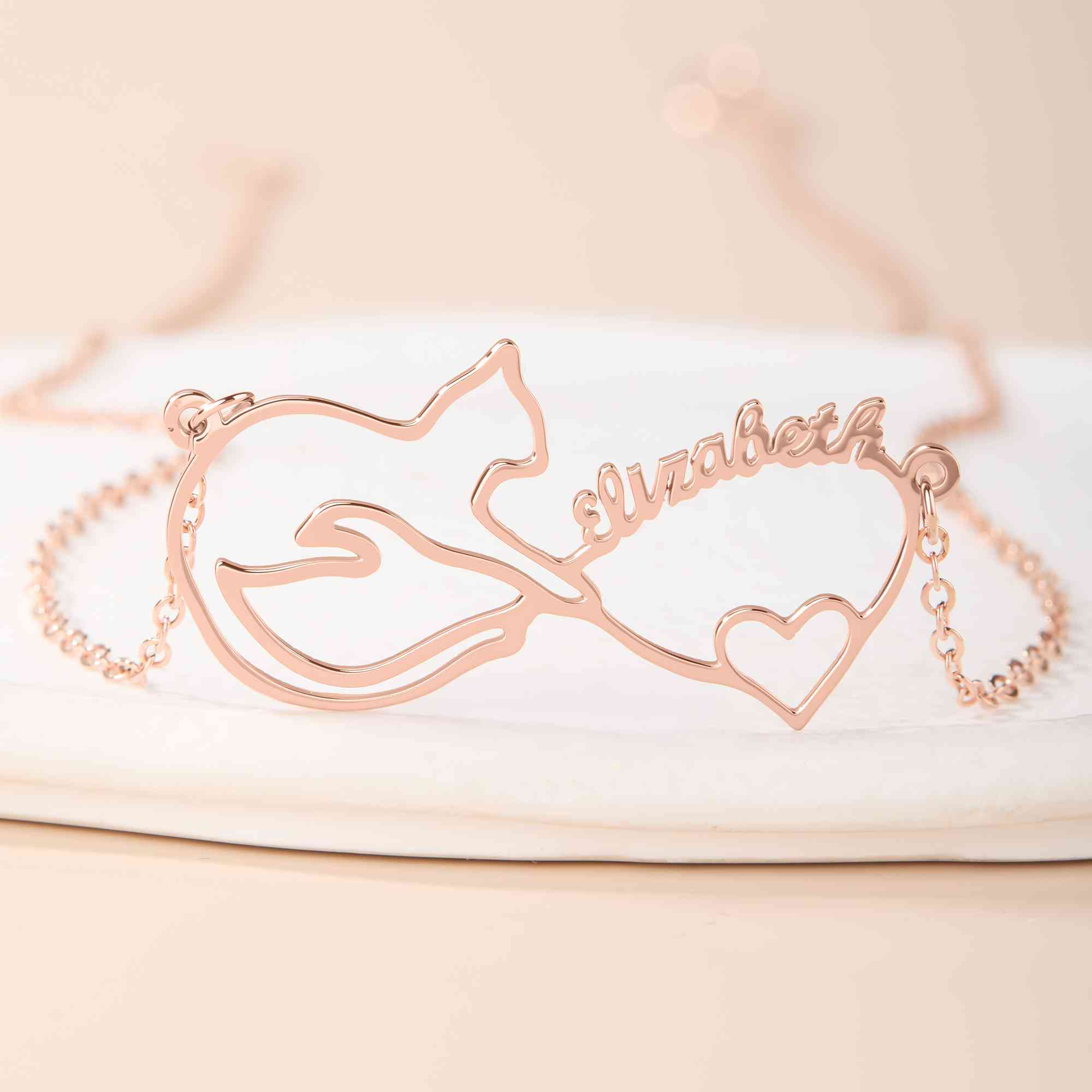 Diseño especial : este exquisito collar de gato Mobius presenta un diseño único que entrelaza bellamente la silueta de un gato con un corazón, simbolizando el vínculo inquebrantable entre los dueños de mascotas y sus amados compañeros peludos.