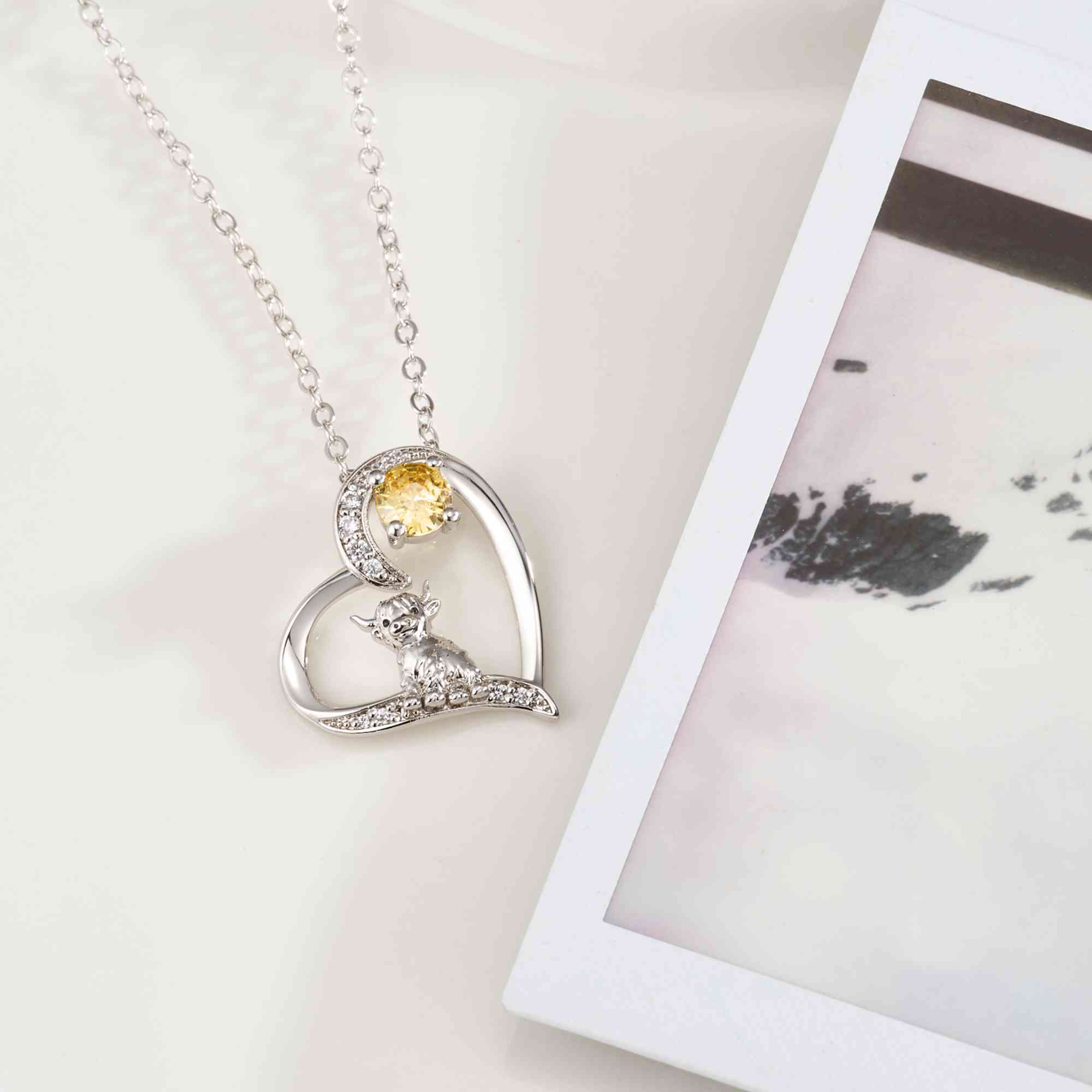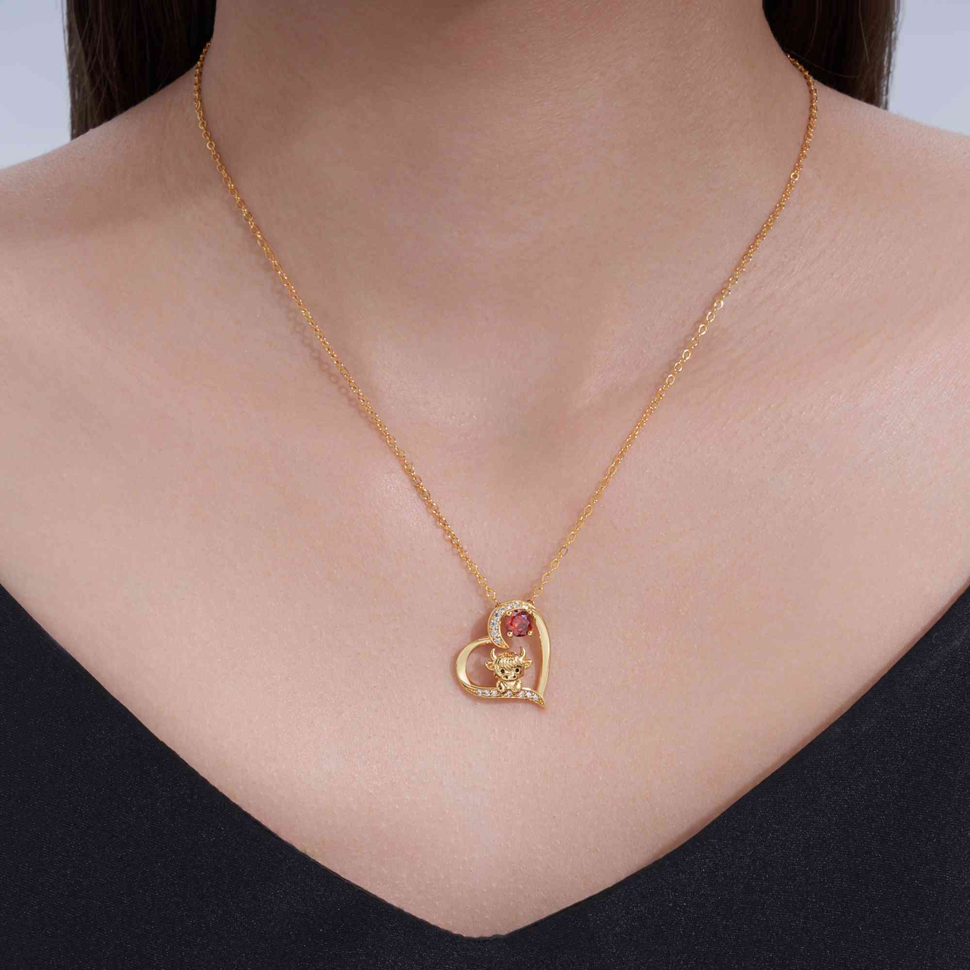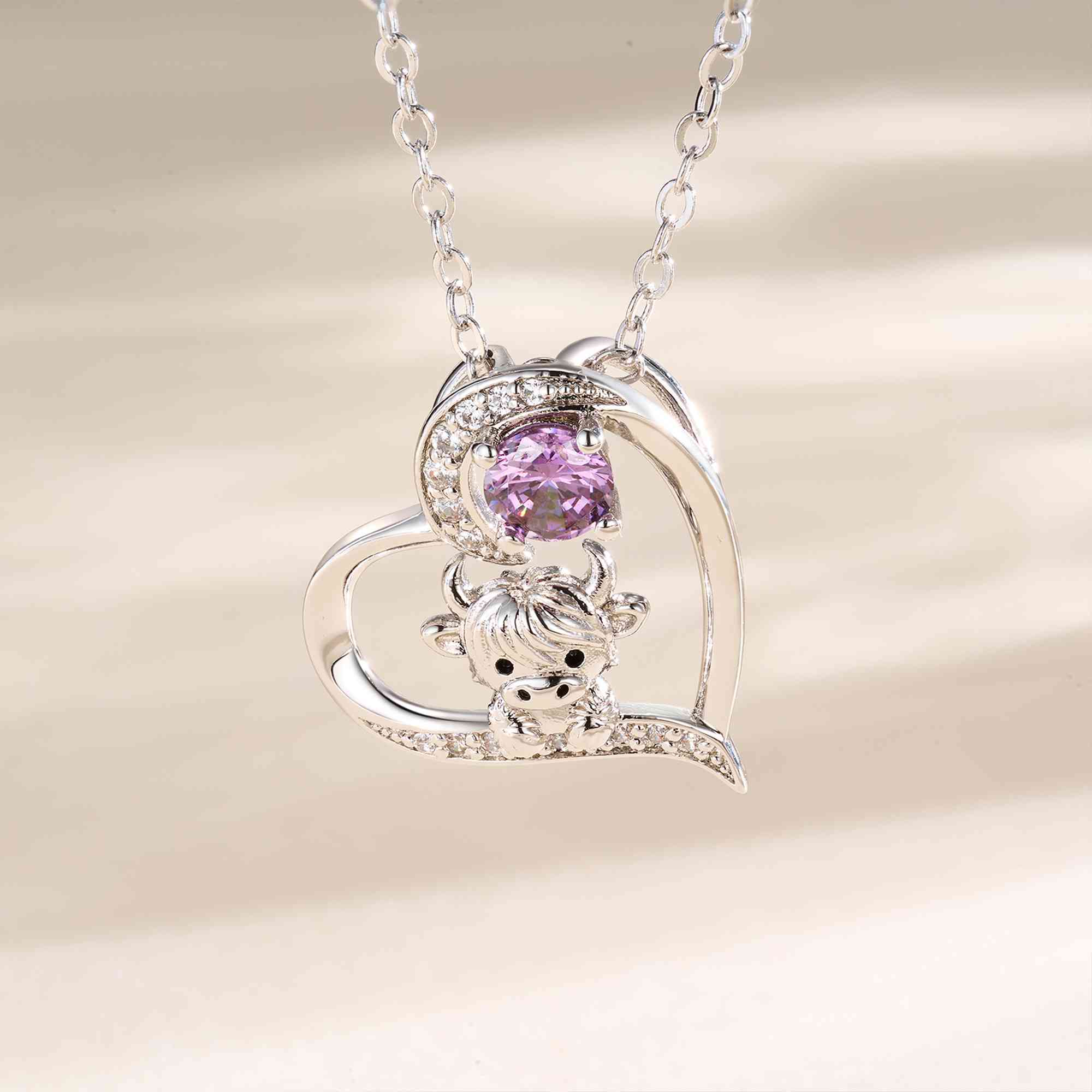 | Estilo | Collar con colgante personalizado de corazón de vaca de las Tierras Altas con piedra de nacimiento |