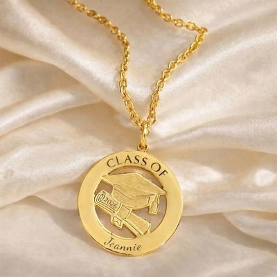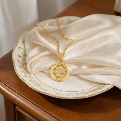 Collar con diseño de birrete de graduación : Este delicado collar presenta un colgante circular con el diseño calado de un birrete de graduación y las palabras "Clase de 2026". Su elegante silueta celebra el logro académico, convirtiéndolo en un significativo símbolo de orgullo y éxito.