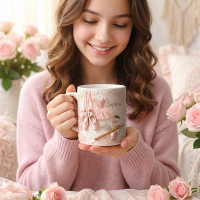 | Estilo | Taza personalizada 3D con temática de ballet y tutú con nombre |