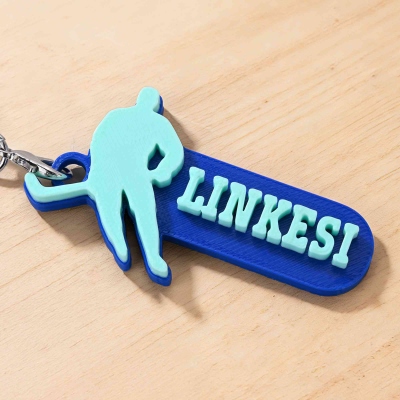 Diseño dinámico de hockey : este llavero impreso en 3D presenta a un jugador de hockey sobre césped en plena acción, con su palo de hockey y una postura deportiva que refleja energía y pasión por el juego. Sus líneas limpias y el efecto 3D en capas le dan un aspecto moderno y llamativo.