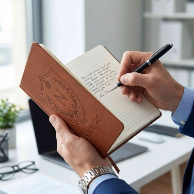 Personalizado con un toque personal : este cuaderno de cuero, personalizado con un nombre y una inicial a juego, se convierte en un recuerdo único. El diseño del escudo personalizado resalta la individualidad, transformando un cuaderno común en un artículo exclusivo, considerado y personal.
