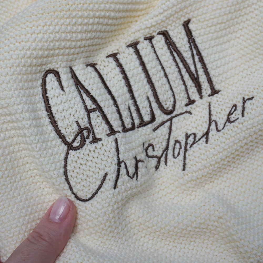 Nombre y fecha personalizados : la manta presenta el nombre completo del niño en un elegante bordado en relieve; la cruz lleva el mismo nombre, la fecha del bautismo y una breve bendición; cada detalle se ha aplicado con cariño para honrar la ocasión sin excesos.