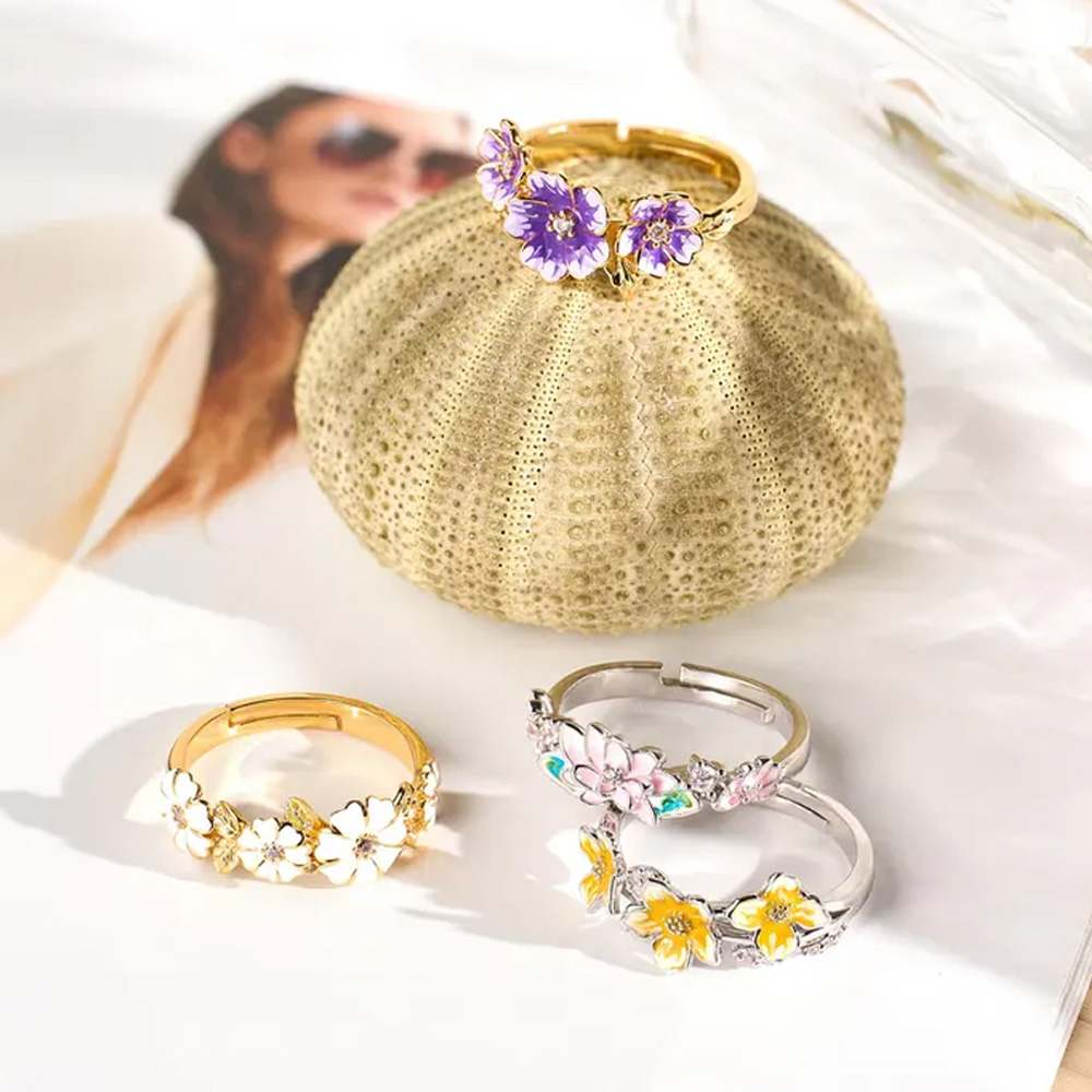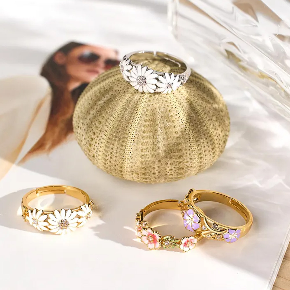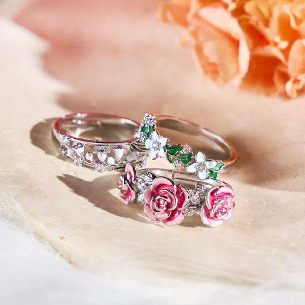 Delicado diseño floral : Este delicado anillo presenta flores de esmalte artesanales en tonos suaves y realistas, que contrastan con una banda pulida. El floreciente diseño floral captura la belleza de la naturaleza, convirtiéndolo en una opción romántica y elegante para el día a día o para ocasiones especiales.