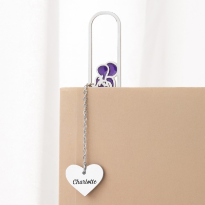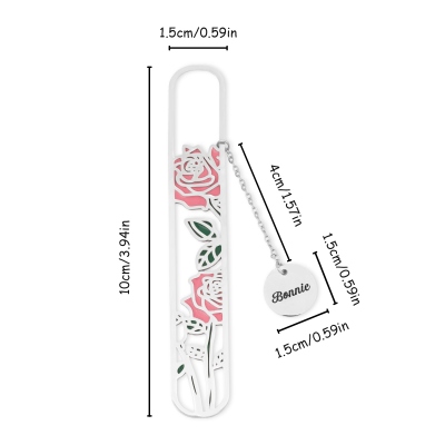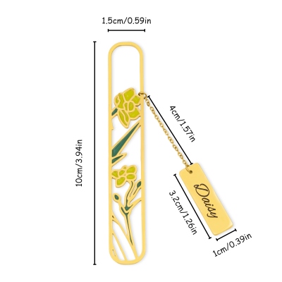 Un toque personalizado : puedes elegir el color del baño y el estilo del dije, y personalizar el marcapáginas con un nombre y la flor de nacimiento correspondiente para crear un compañero de lectura único y especial.