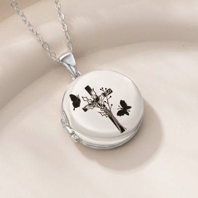 Foto y flor de nacimiento personalizadas : El medallón se abre para guardar una o dos fotos y un mensaje especial, lo que te permite llevar a tus seres queridos cerca de tu corazón. La parte frontal se puede personalizar con una flor de nacimiento que represente un mes significativo. Este toque personal convierte el collar en un recuerdo único y lleno de recuerdos.