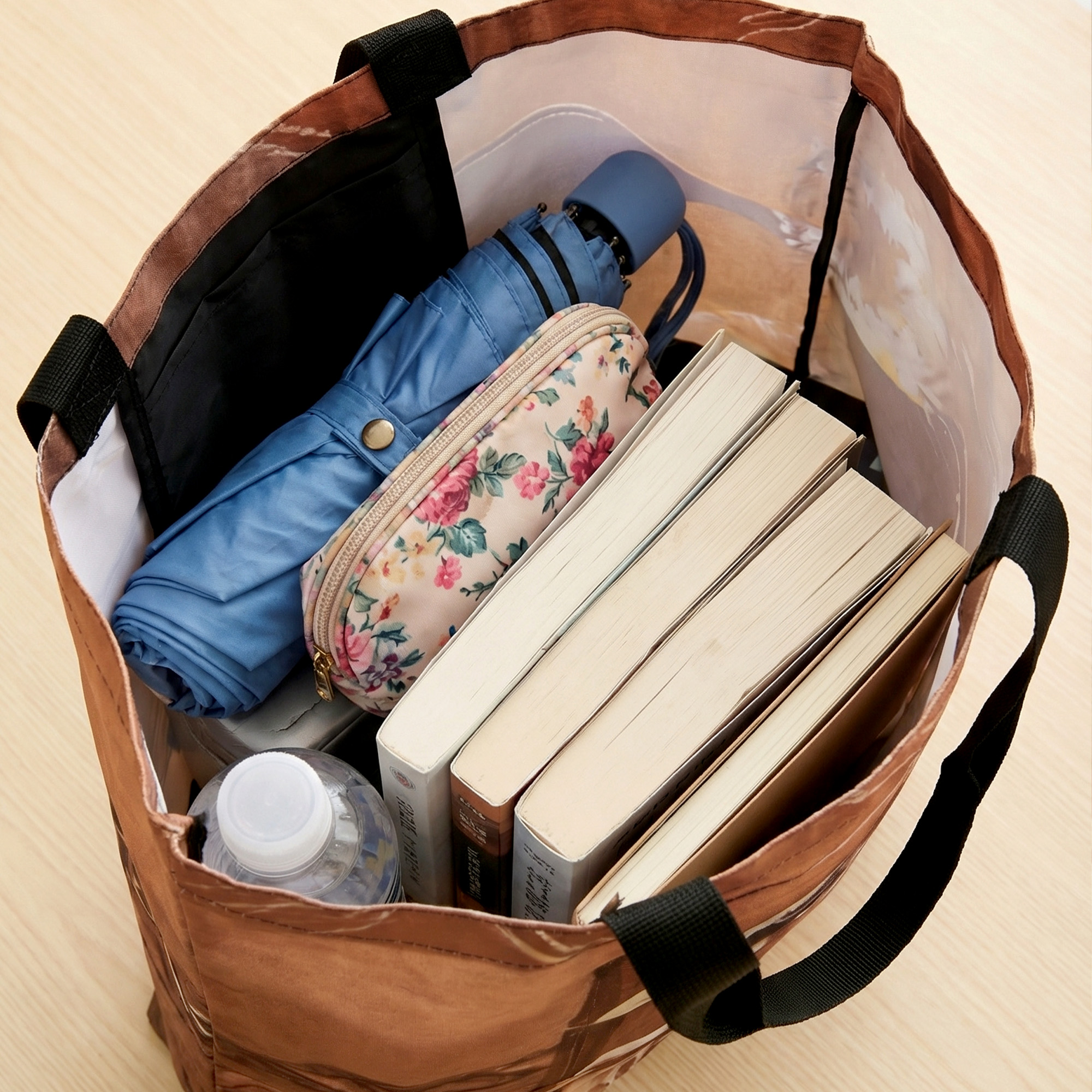 Resistente y a prueba de agua : Confeccionada con tela resistente y a prueba de agua, esta bolsa protege tus pertenencias de derrames leves y del desgaste diario. Sus asas robustas ofrecen un agarre cómodo, y el estampado nítido conserva su color y detalles con el paso del tiempo.