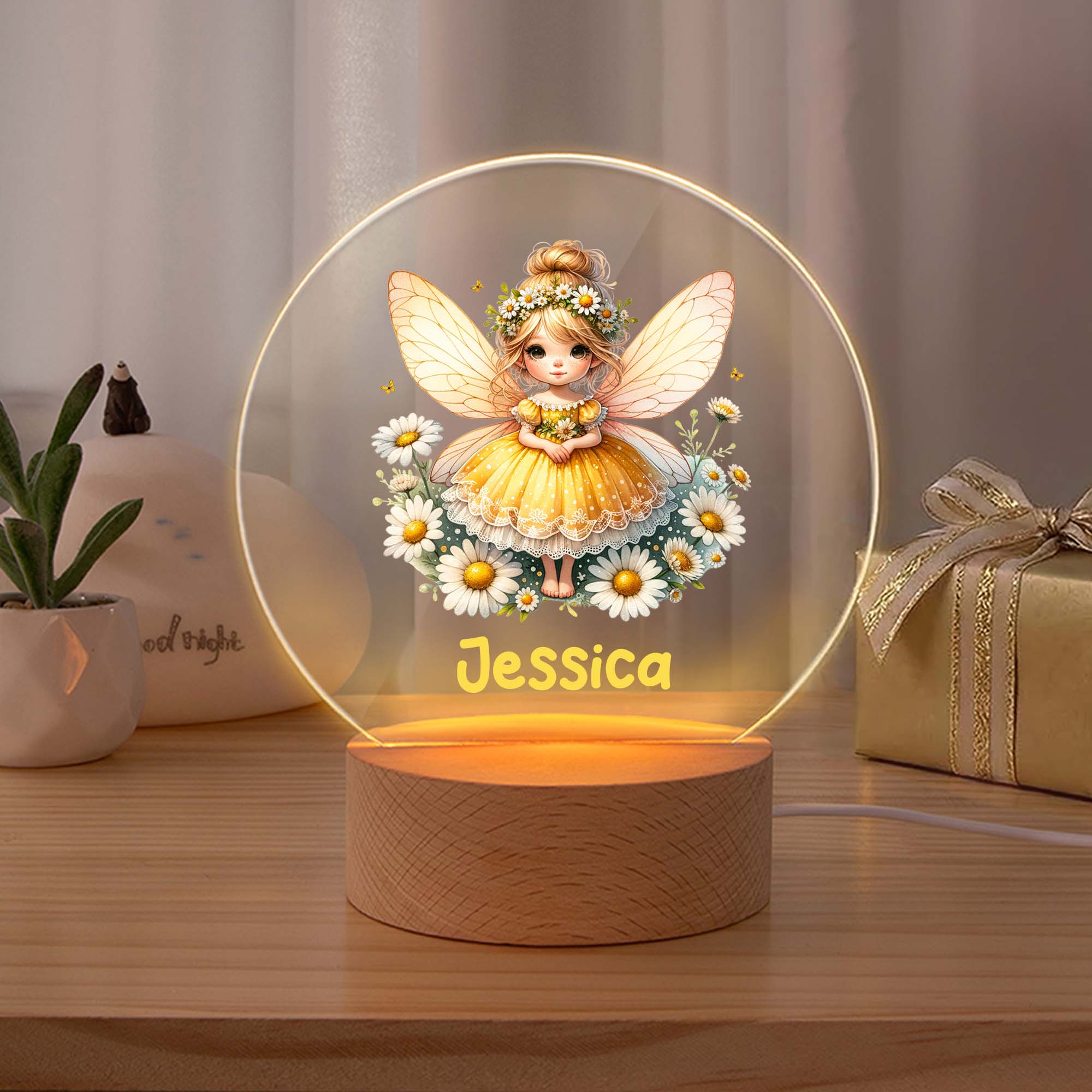 Diseño con temática de hada : esta lámpara de noche LED resalta la delicada silueta de un hada combinada con la flor de nacimiento. El vestido vaporoso, las pequeñas alas y los finos detalles florales crean un estilo suave y onírico con un toque mágico y elegante. Aporta un toque encantador a dormitorios, cuartos infantiles o espacios pequeños y acogedores, simbolizando la belleza, el crecimiento y la individualidad.