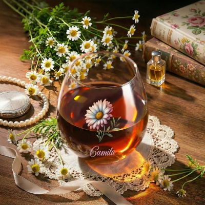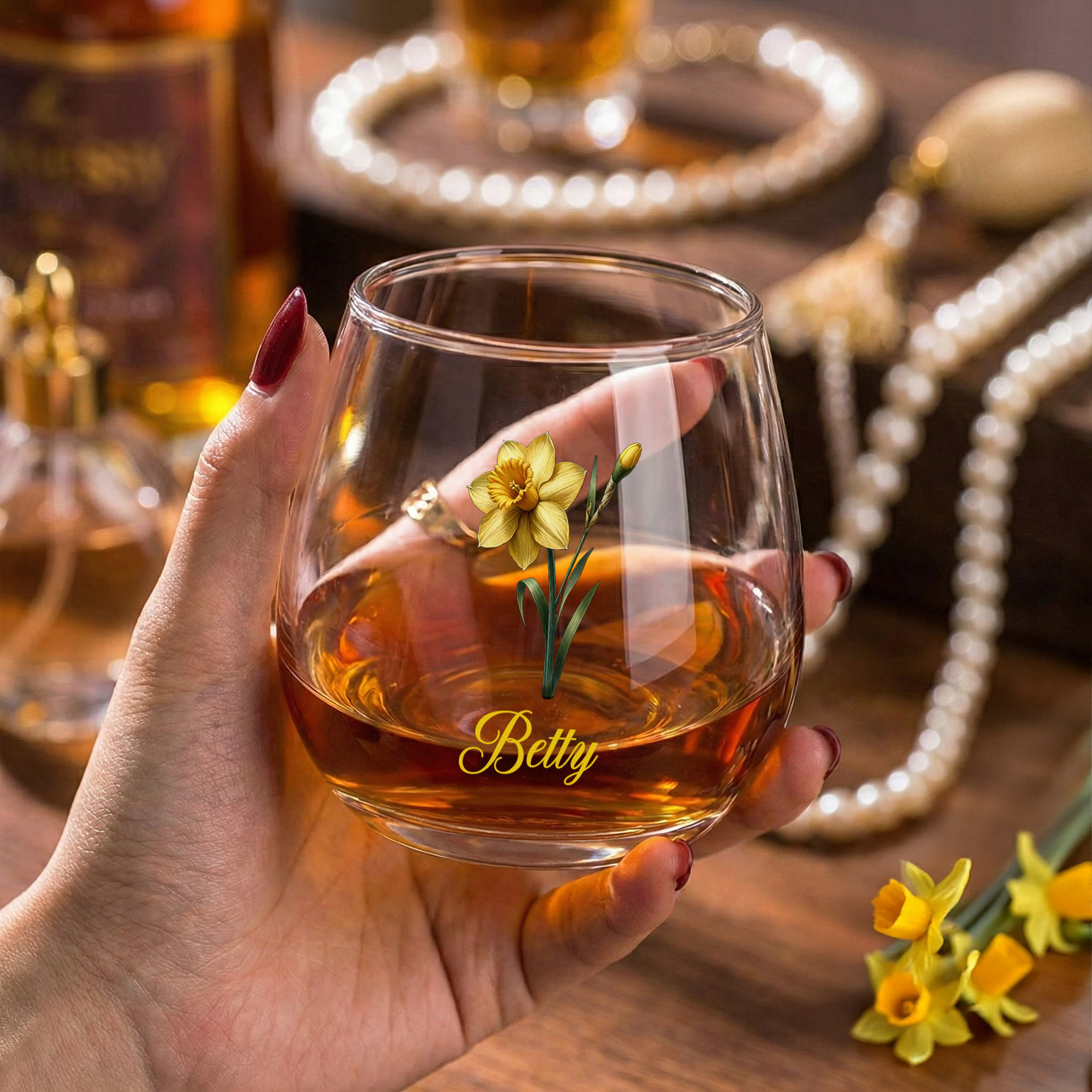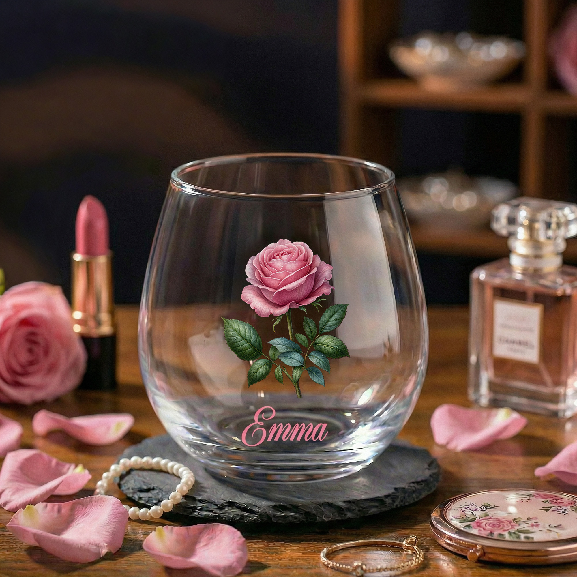 | Estilo | Copa de vino con flor de nacimiento personalizada con nombre |