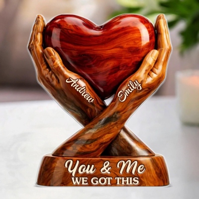| Estilo | Placa de corazón personalizada con los nombres de pareja "We Got This" |