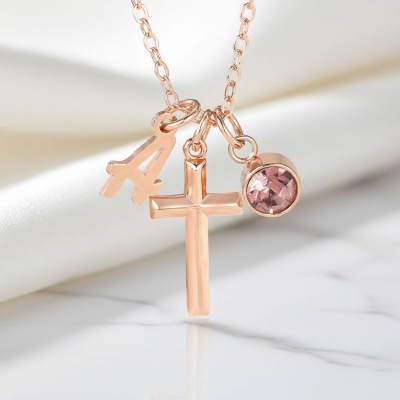 | Estilo | Collar con cruz personalizada con inicial y piedra de nacimiento |