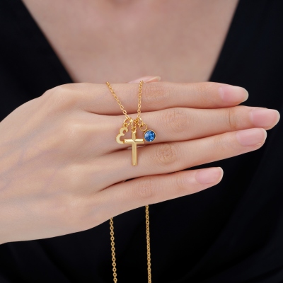 Diseño de cruz inspirado en la fe : este collar presenta un delicado colgante de cruz con sutiles iniciales y detalles de piedras de nacimiento, que simbolizan la fe, el amor y la guía. Su estilo sencillo y elegante es ideal tanto para el uso diario como para ocasiones especiales.