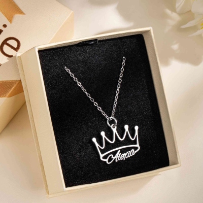 Elegante diseño de corona : este colgante presenta un contorno de corona simple combinado con un nombre personalizado, lo que le da un estilo minimalista suave que agrega un toque elegante y de reina a cualquier atuendo.