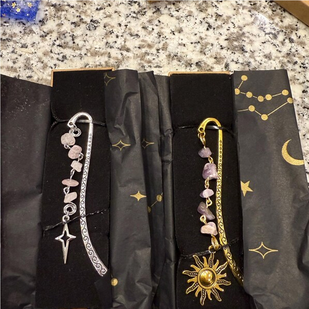 Artesanía de primera calidad : Fabricado en metal de alta calidad con acabado pulido, este marcapáginas resiste el deslustre y conserva su brillo con el paso del tiempo. Los cristales incrustados captan la luz con belleza, aportando un brillo sutil que realza cualquier estantería o rincón de lectura.