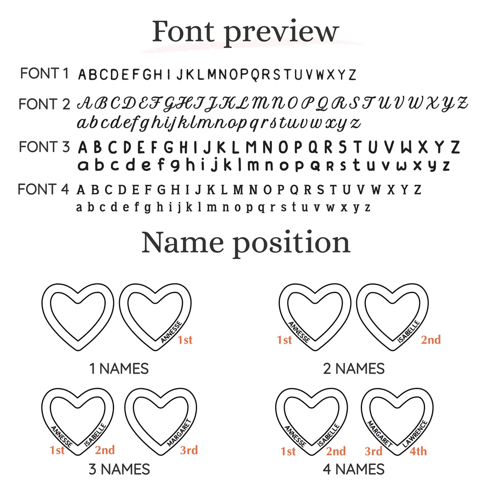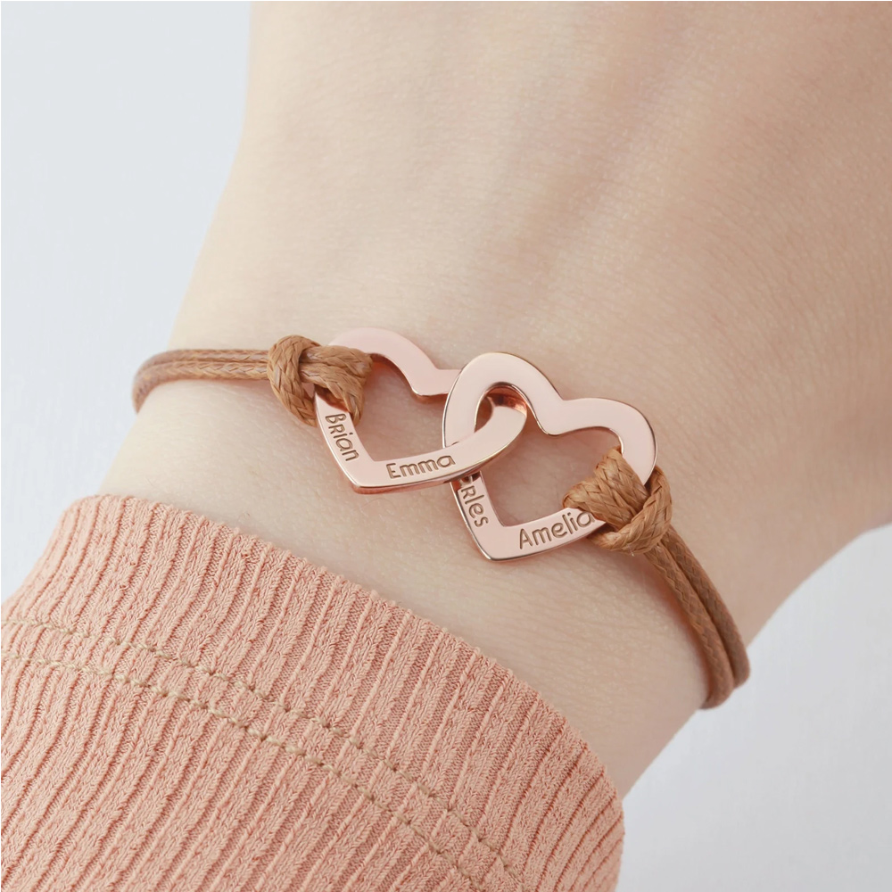 Grabado de nombre personalizado : Cada corazón puede grabarse con hasta cuatro nombres, convirtiéndolo en un homenaje profundamente personal a tu familia. Personaliza cada corazón con los nombres de tus hijos, nietos o seres queridos. El delicado grabado añade profundidad emocional y convierte esta pulsera en un preciado recuerdo que rinde homenaje a las personas que más te importan.