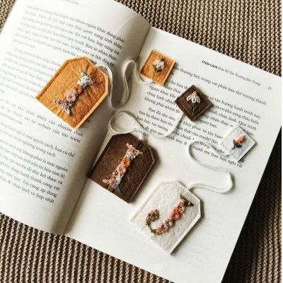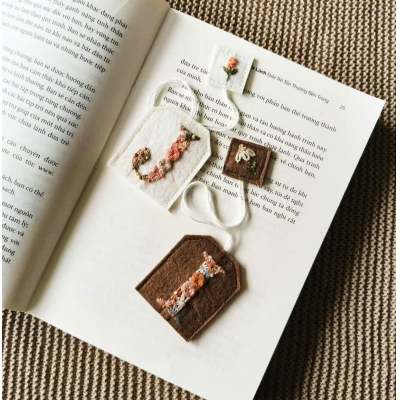 Diseño de fieltro suave y bolsita de té : elaborado con fieltro delicado y bordados florales coloridos, este marcapáginas es ligero y suave al tacto. Su cordón integrado, similar al de una bolsita de té, permite engancharlo fácilmente a la página del libro.