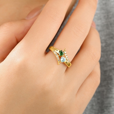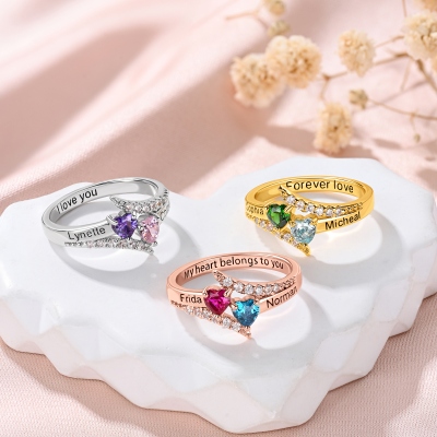 Diseño de doble corazón entrelazado : este anillo luce dos piedras de nacimiento en forma de corazón unidas, que simbolizan el amor profundo, la lealtad y la conexión emocional. Su diseño delicado y refinado le confiere un aspecto elegante y atemporal, ideal tanto para el uso diario como para ocasiones especiales.
