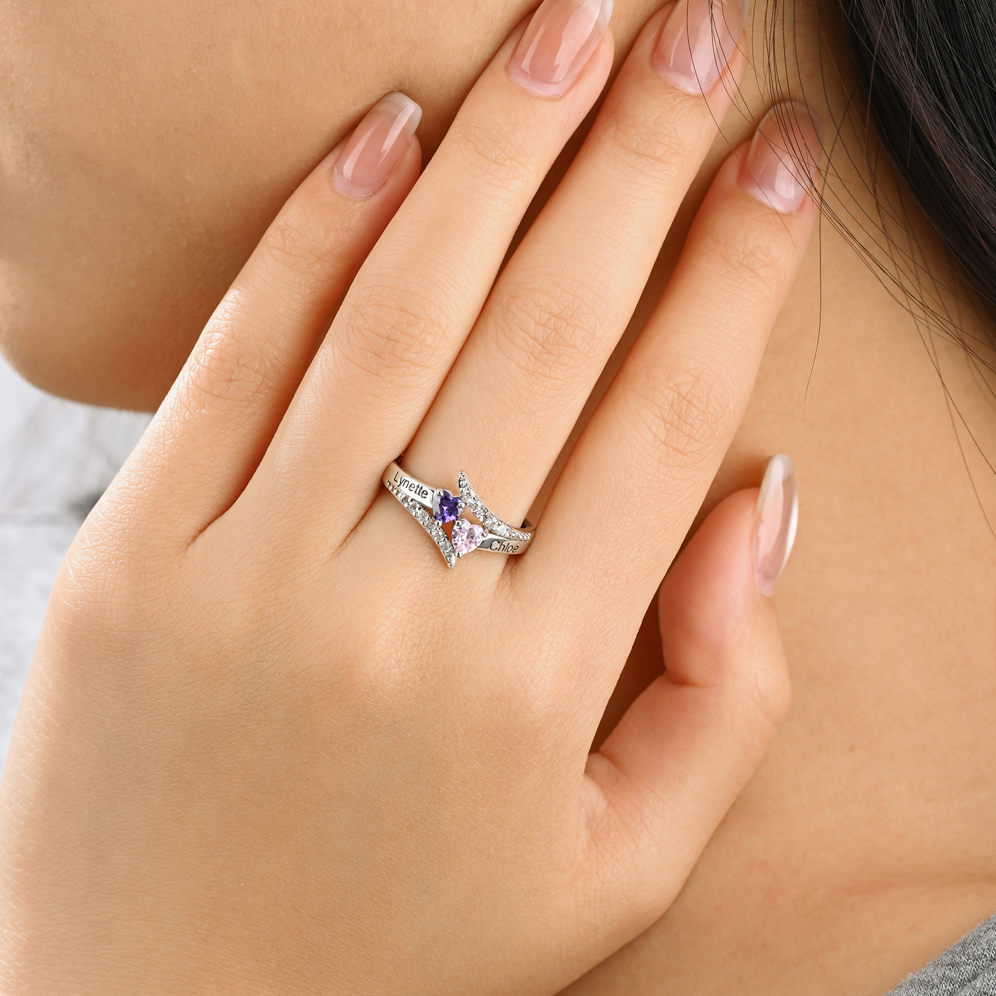 Piedras de nacimiento y grabado : personaliza el anillo con dos nombres y piedras de nacimiento en forma de corazón a juego, además de un mensaje personalizado en el interior para reflejar vuestro vínculo especial. Cada piedra en forma de corazón representa un mes de nacimiento, mientras que el grabado añade un toque emotivo y único.