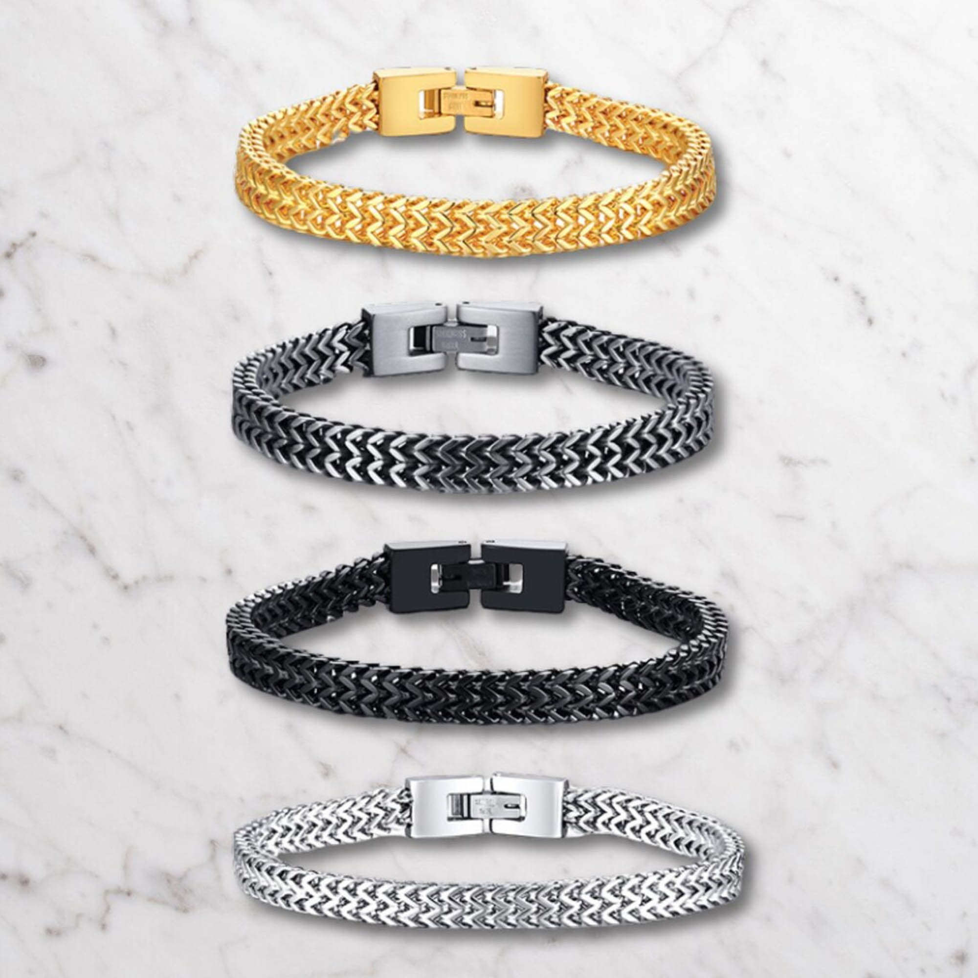 Estilo moderno y elegante : Con un diseño contemporáneo, esta pulsera complementa a la perfección cualquier atuendo. Su elegante cadena y estilo minimalista la hacen ideal para el uso diario o eventos especiales, atrayendo a hombres con gustos variados.