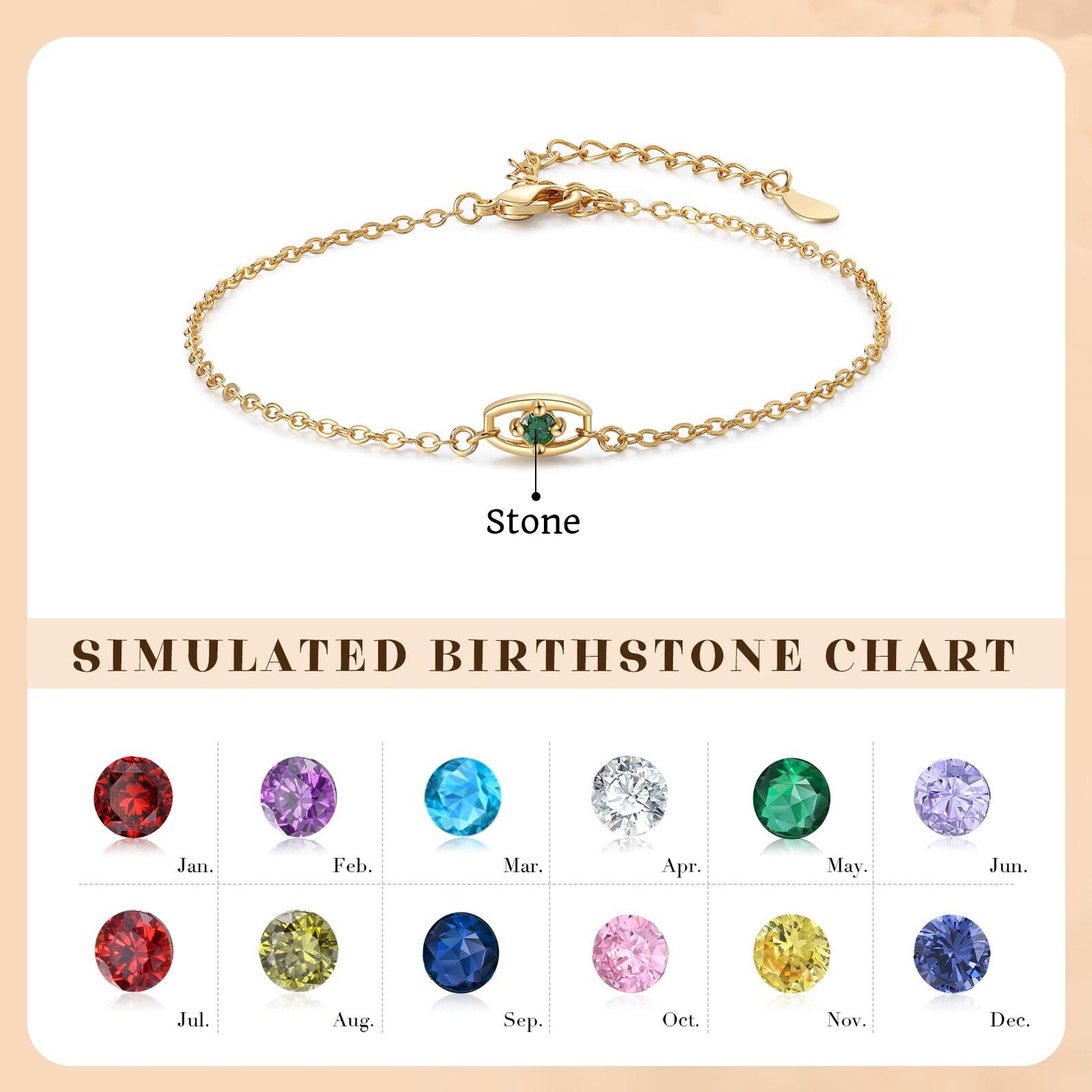 | Estilo | Pulsera de protección personalizada con ojo malvado (1-6 piedras de nacimiento) |