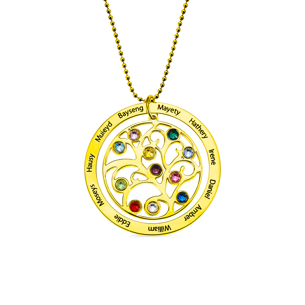 Collar personalizado de piedras de nacimientol de árbol genealógico en oro