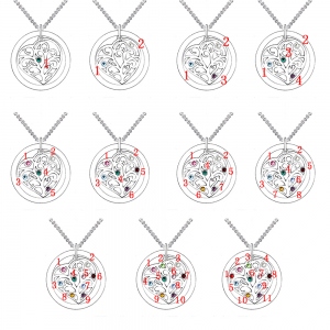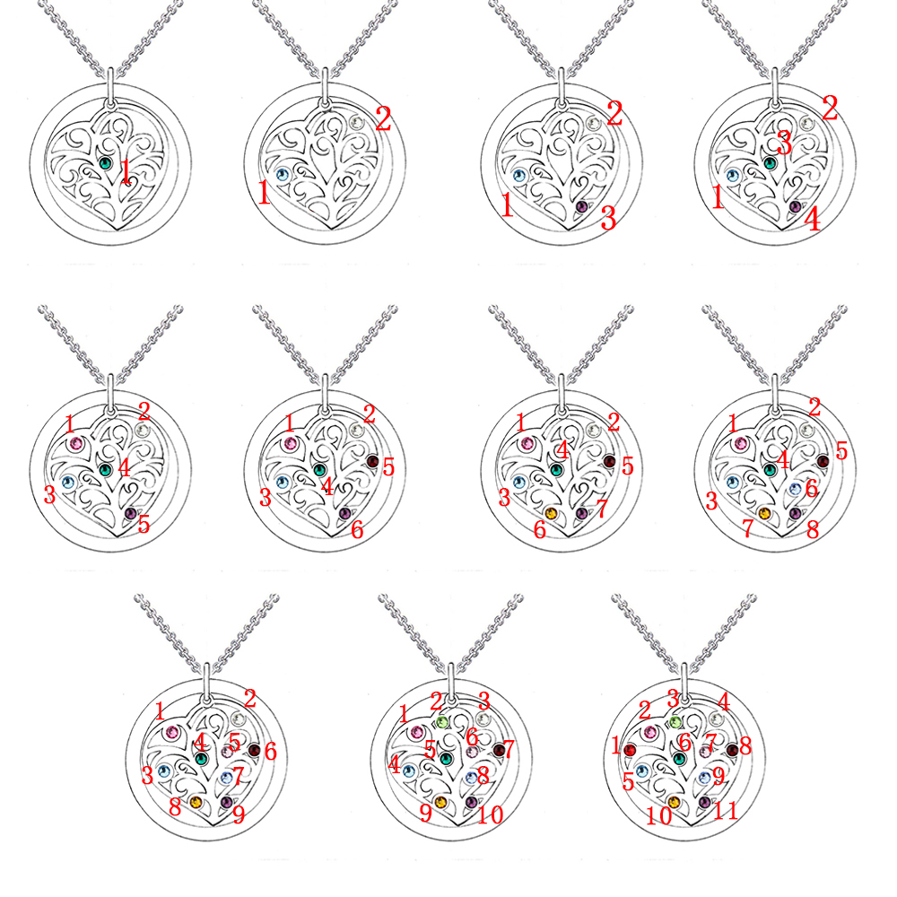 Este collar de árbol genealógico con nombre personalizado y piedra de nacimiento plateado presenta un exclusivo colgante en forma de árbol que está personalizado para representar su árbol genealógico con nombres grabados y dijes de piedras natales. ¡Es una manera perfecta de expresar tu amor por tu querida familia!