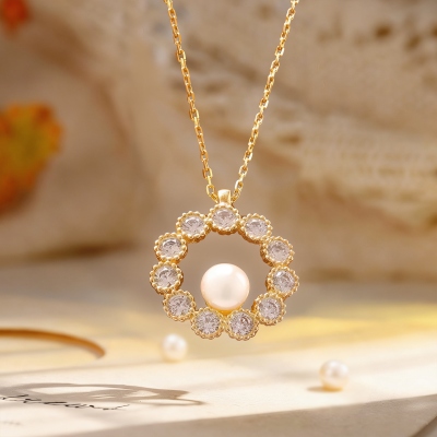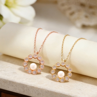 | Estilo | Collar personalizado con perlas de agua dulce y circonitas en forma de círculo |