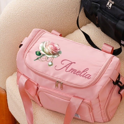 Toque Personalizado : Puedes personalizar el bolso con cualquier nombre o palabra, creando una pieza que te hará sentir verdaderamente única. El diseño se imprime con claridad y se mantiene vibrante, brindándote un bolso de viaje que refleja tu estilo diario.