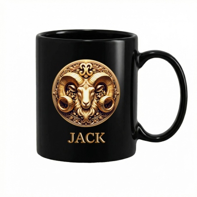 | Estilo | Taza negra personalizada con el signo del zodiaco en relieve dorado y nombre |