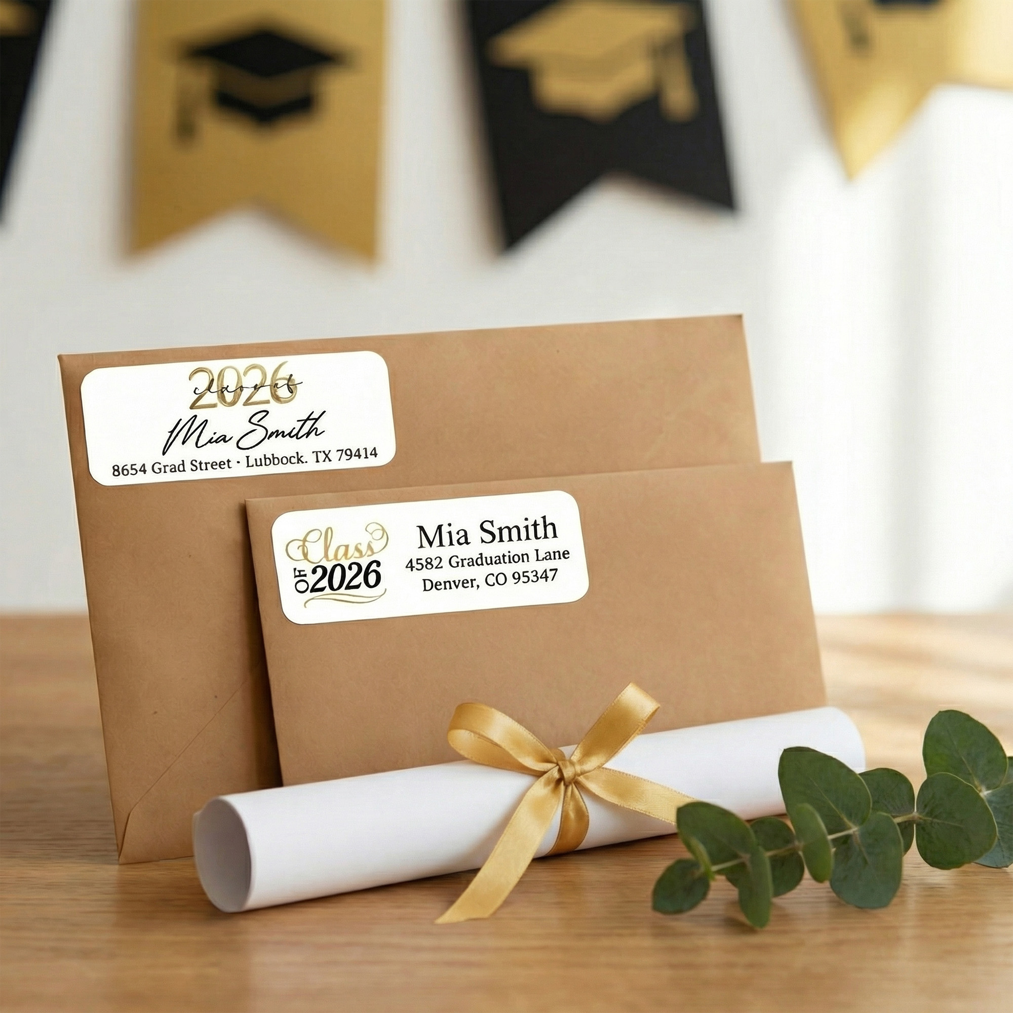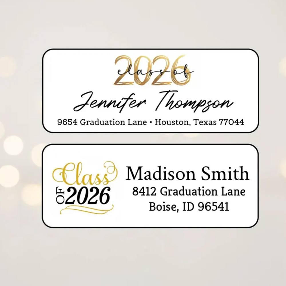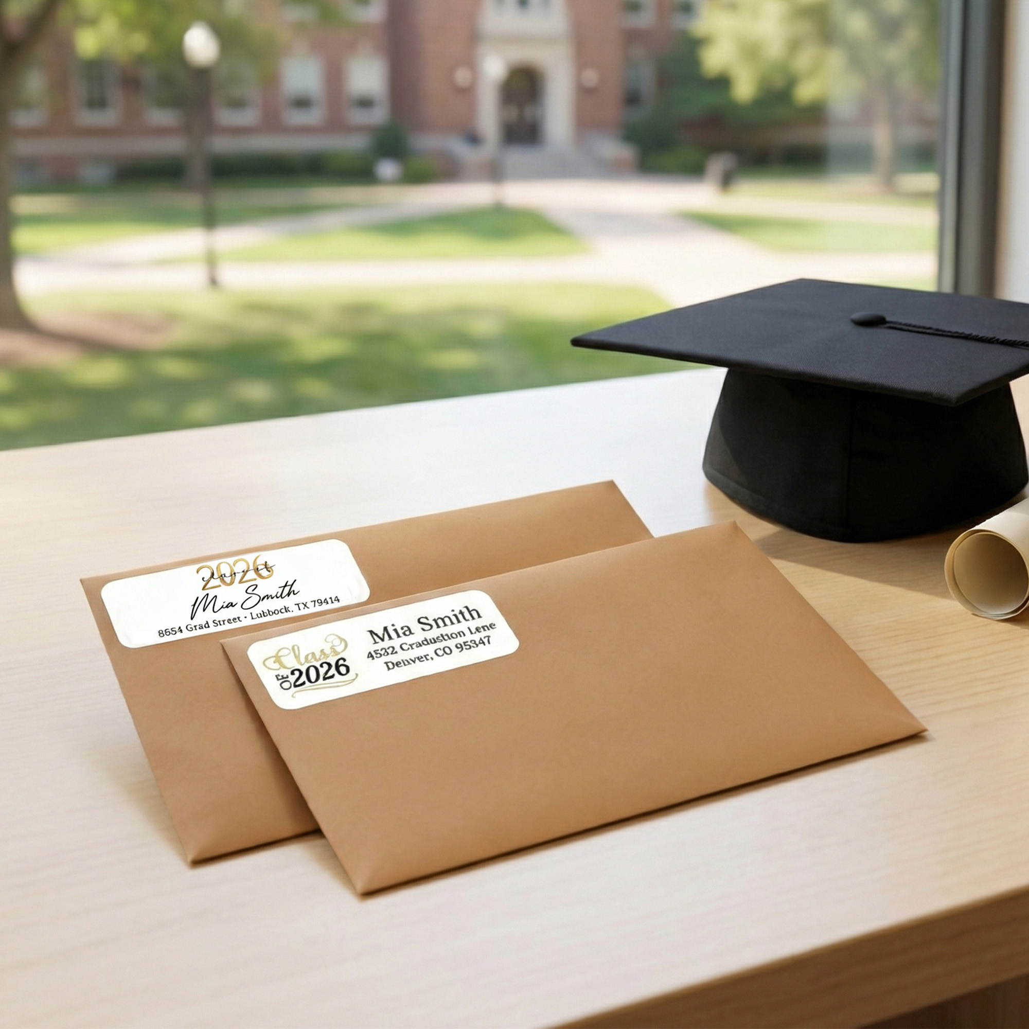 Totalmente personalizable : personalícelo con el nombre completo y la dirección postal de cualquier graduado, garantizando que sus anuncios, notas de agradecimiento o regalos lleguen con orgullo y precisión.