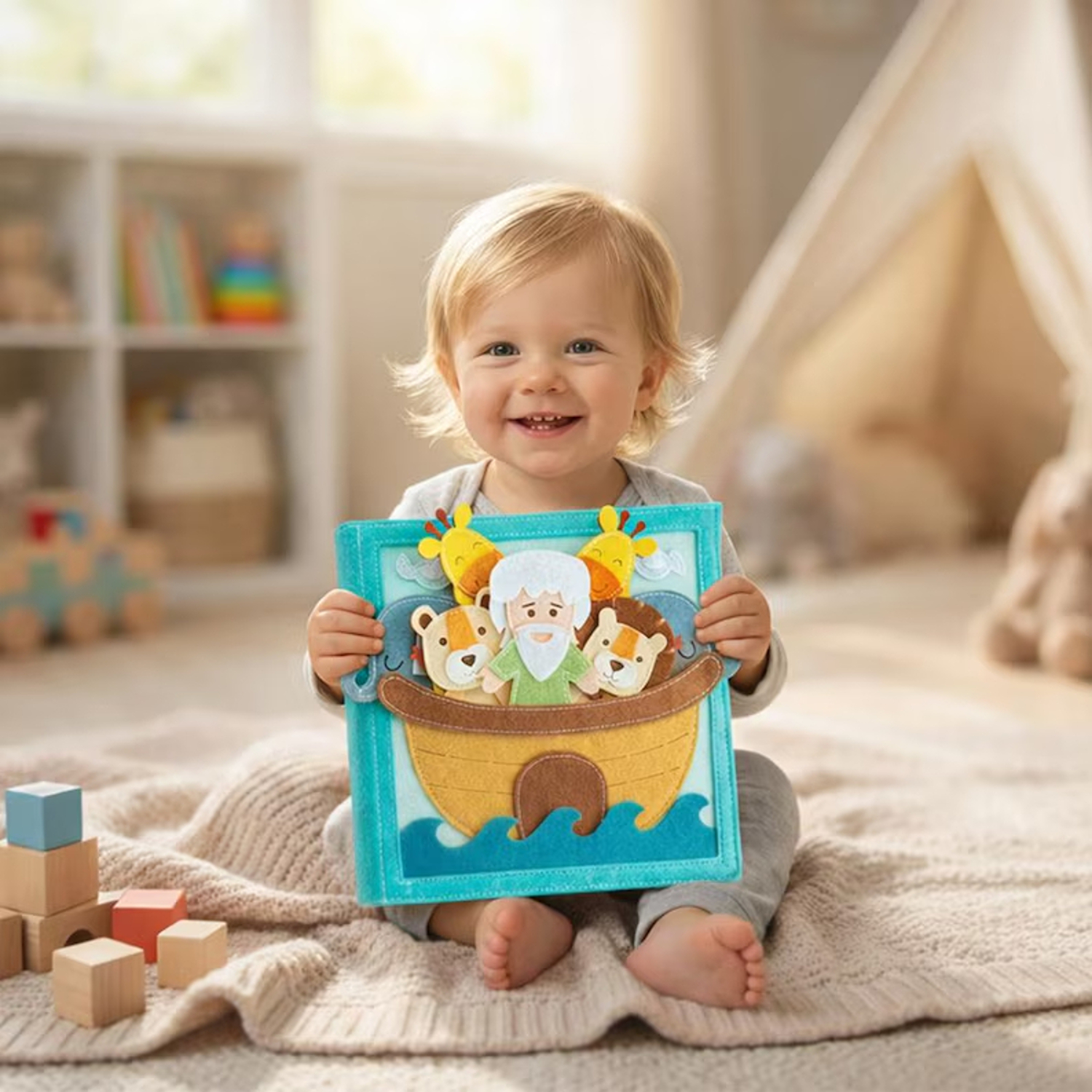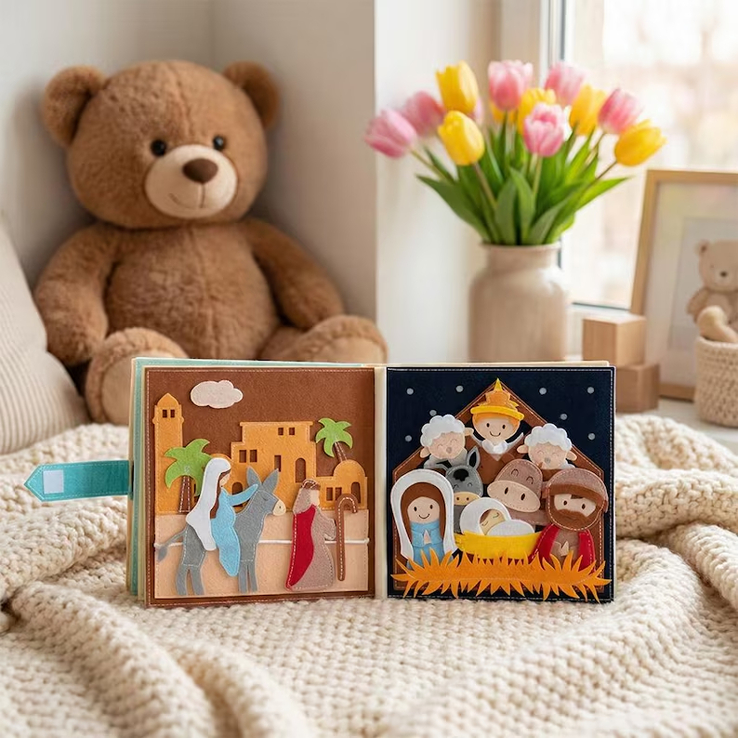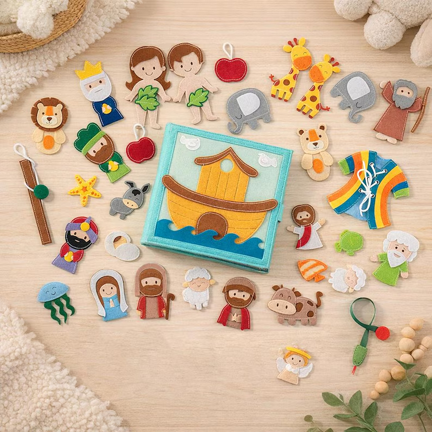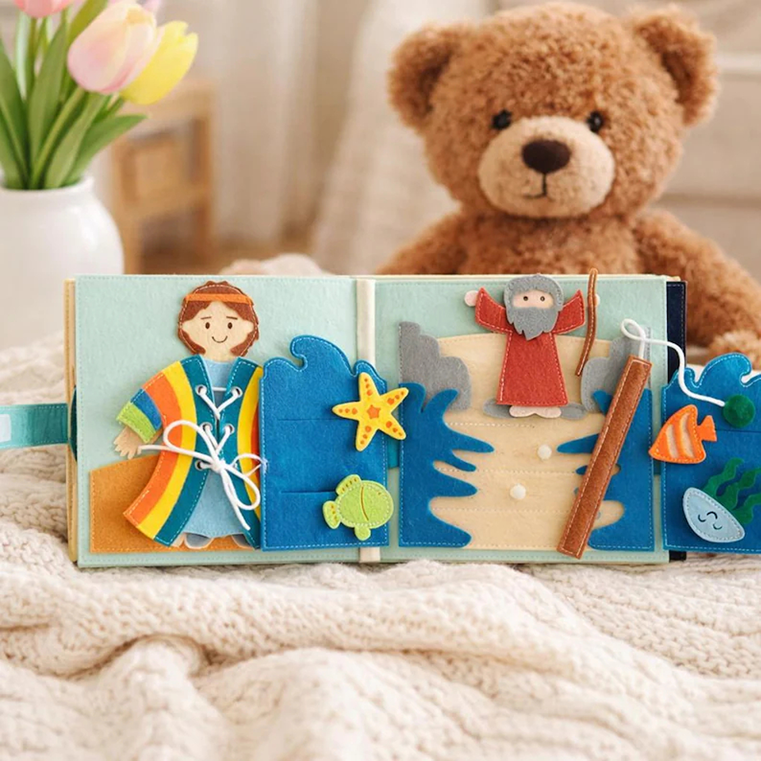 | Estilo | Libro de actividades bíblico de fieltro personalizado hecho a mano con nombre |