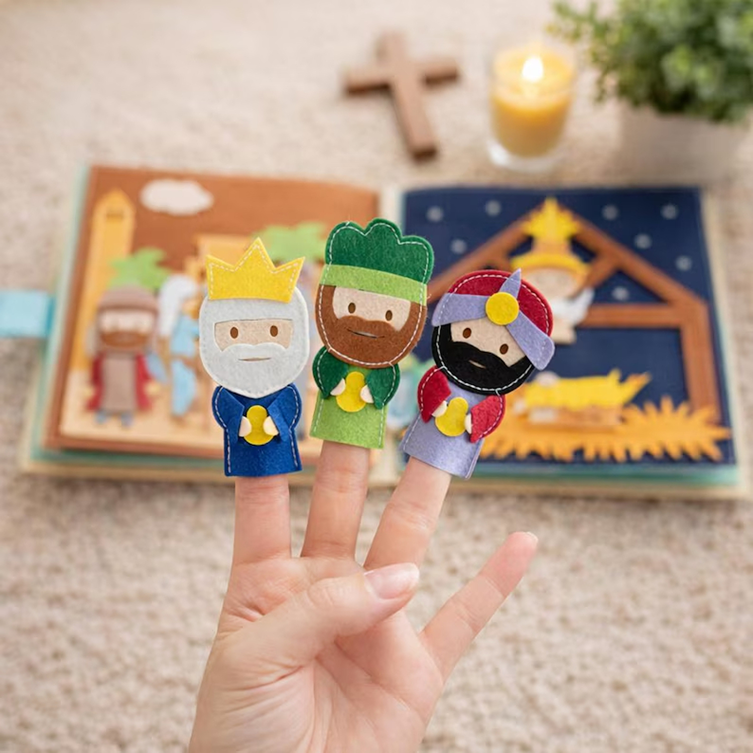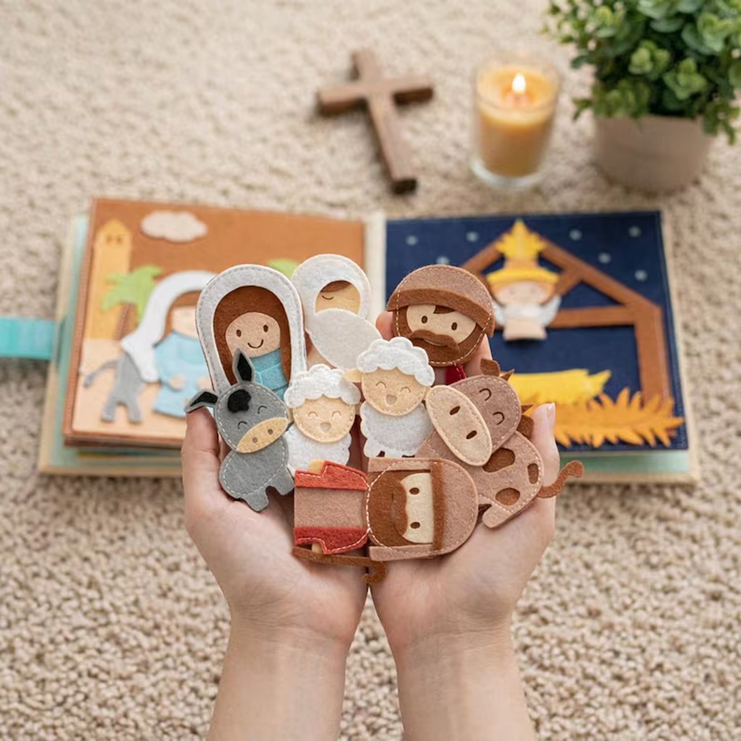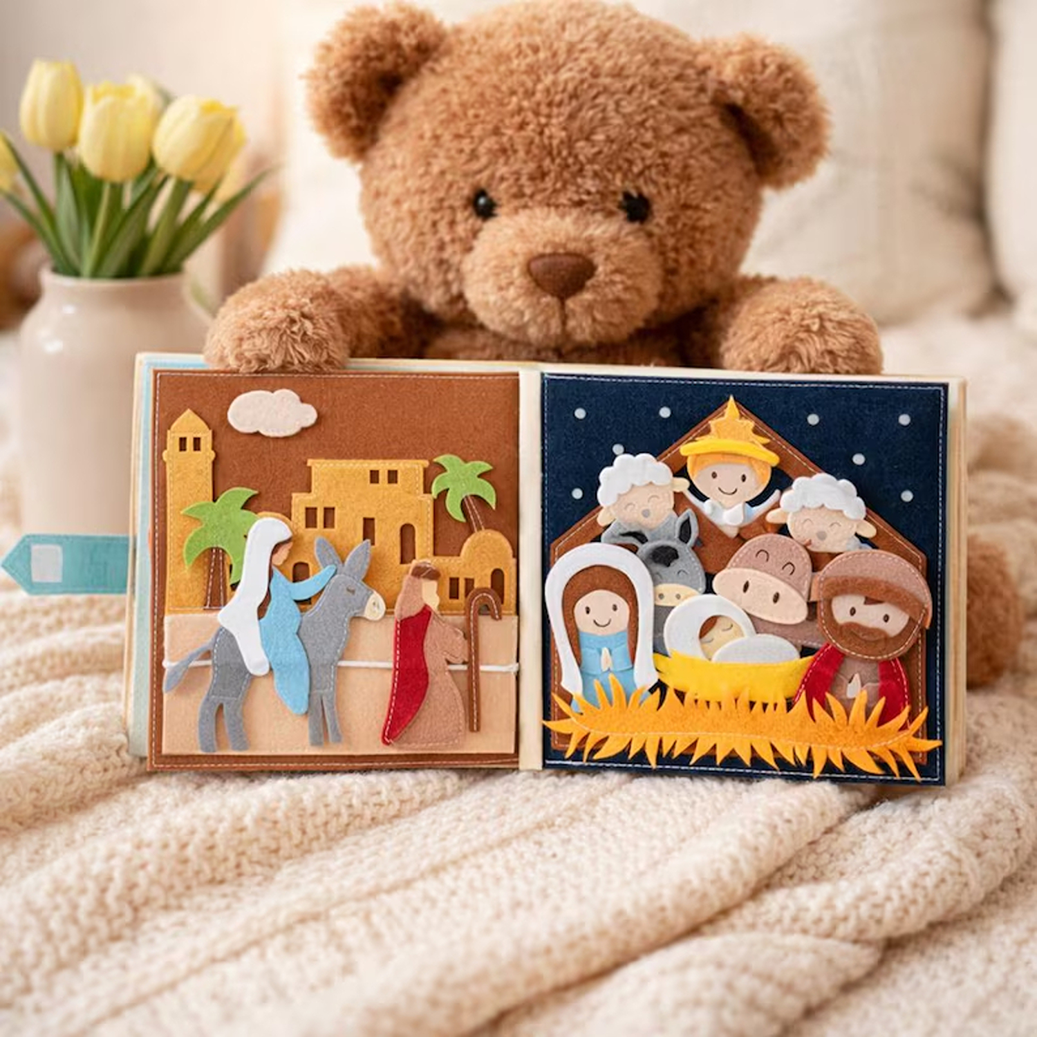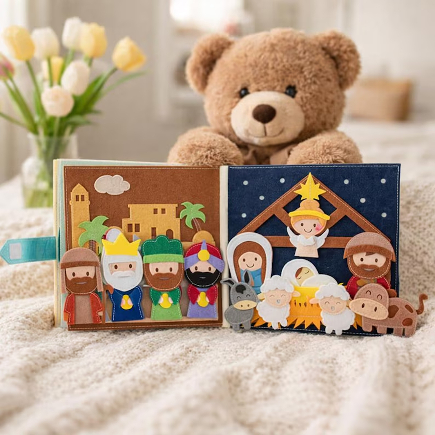 Suave y seguro para las manitas de los más pequeños : confeccionado con fieltro de mezcla de lana de primera calidad, tintes no tóxicos y bordes redondeados, es delicado con la piel y seguro para que los niños se lo lleven a la boca. Su tamaño compacto cabe en el regazo de los niños y en las bolsas de viaje, por lo que es ideal para casa, el coche o las visitas a la iglesia.
