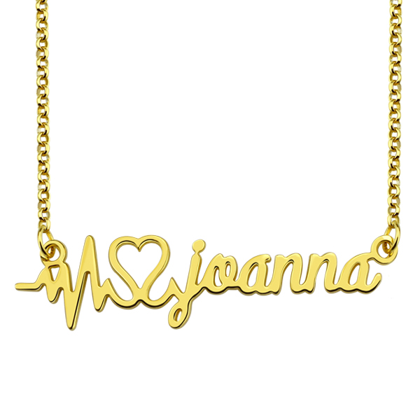 Collar personalizado con nombre estilo latido de corazón en plata chapada en oro
