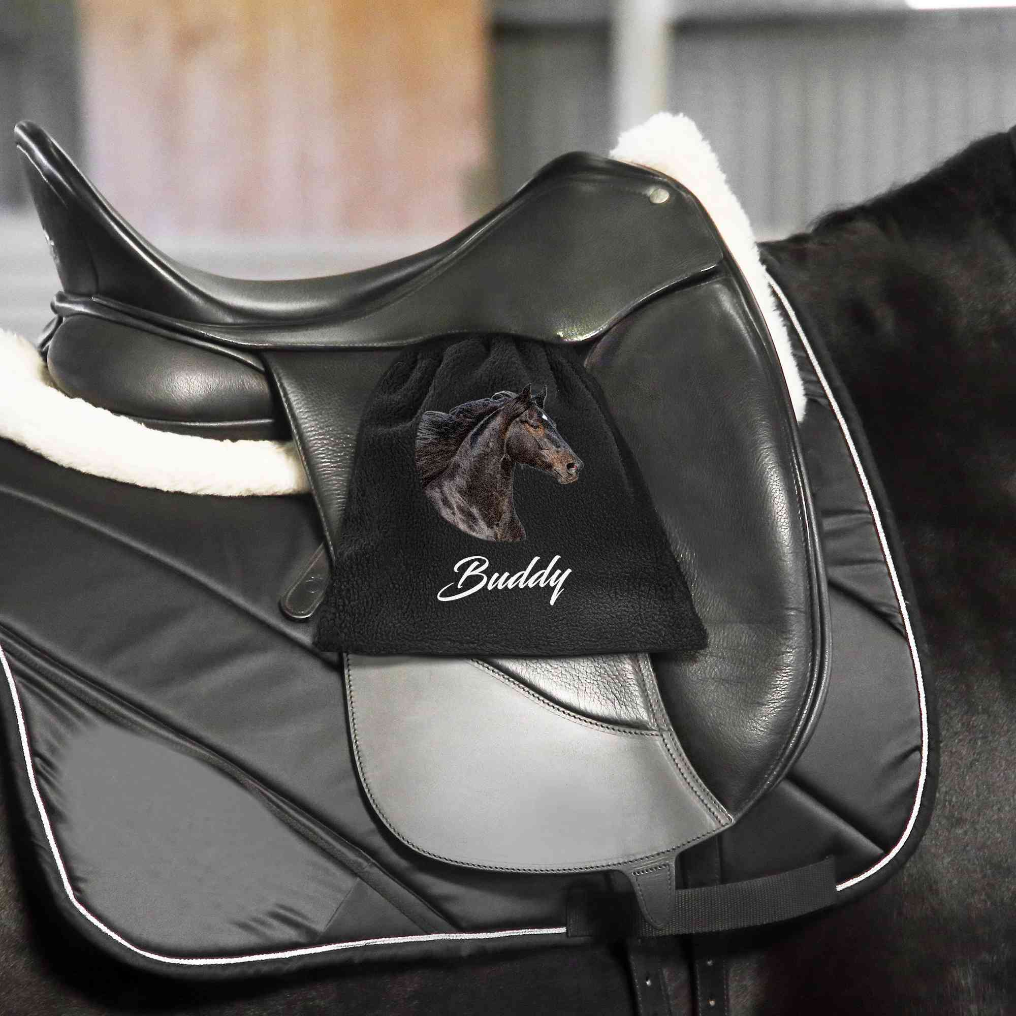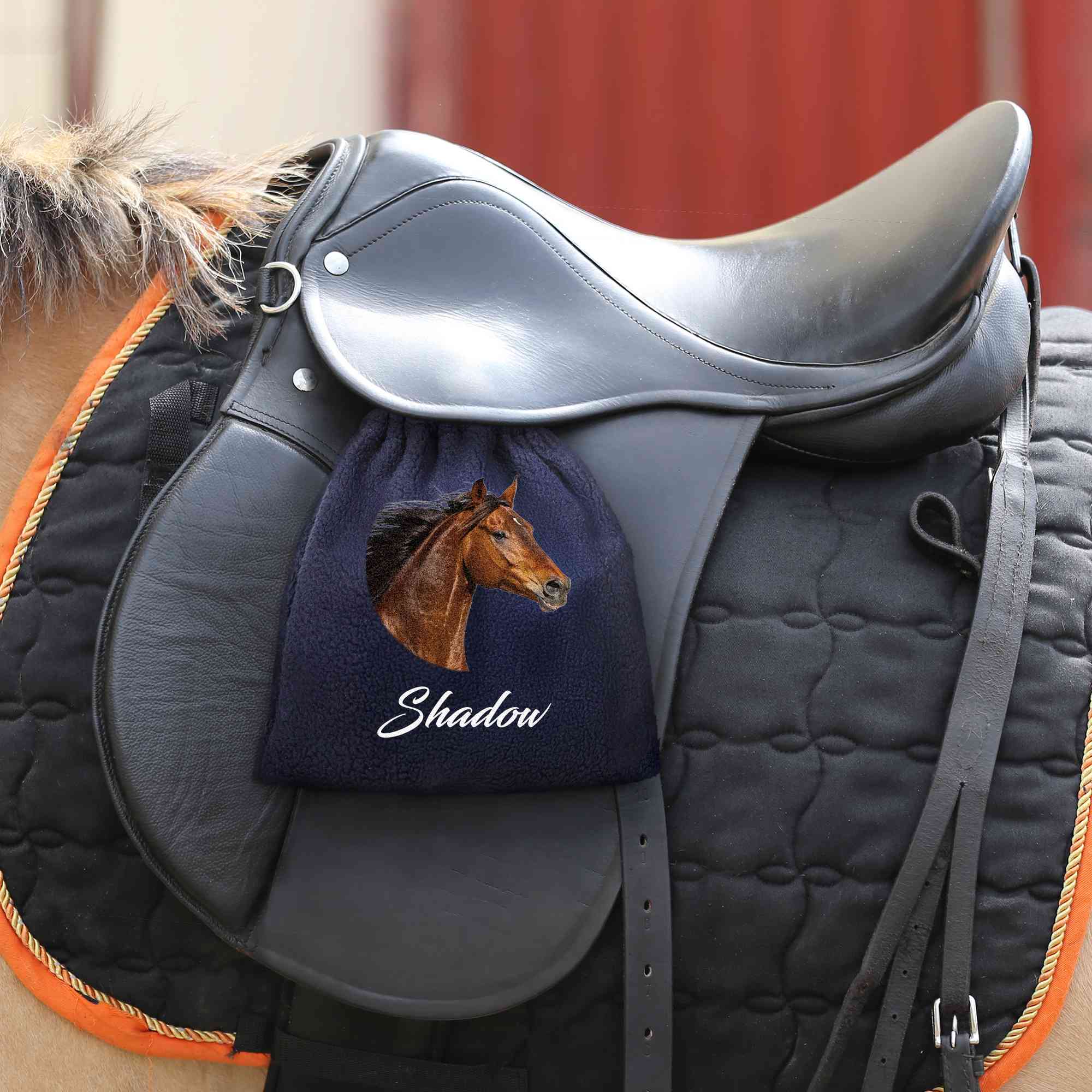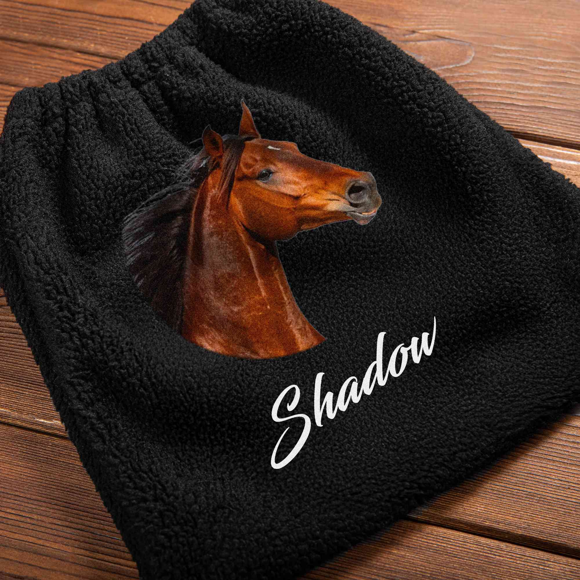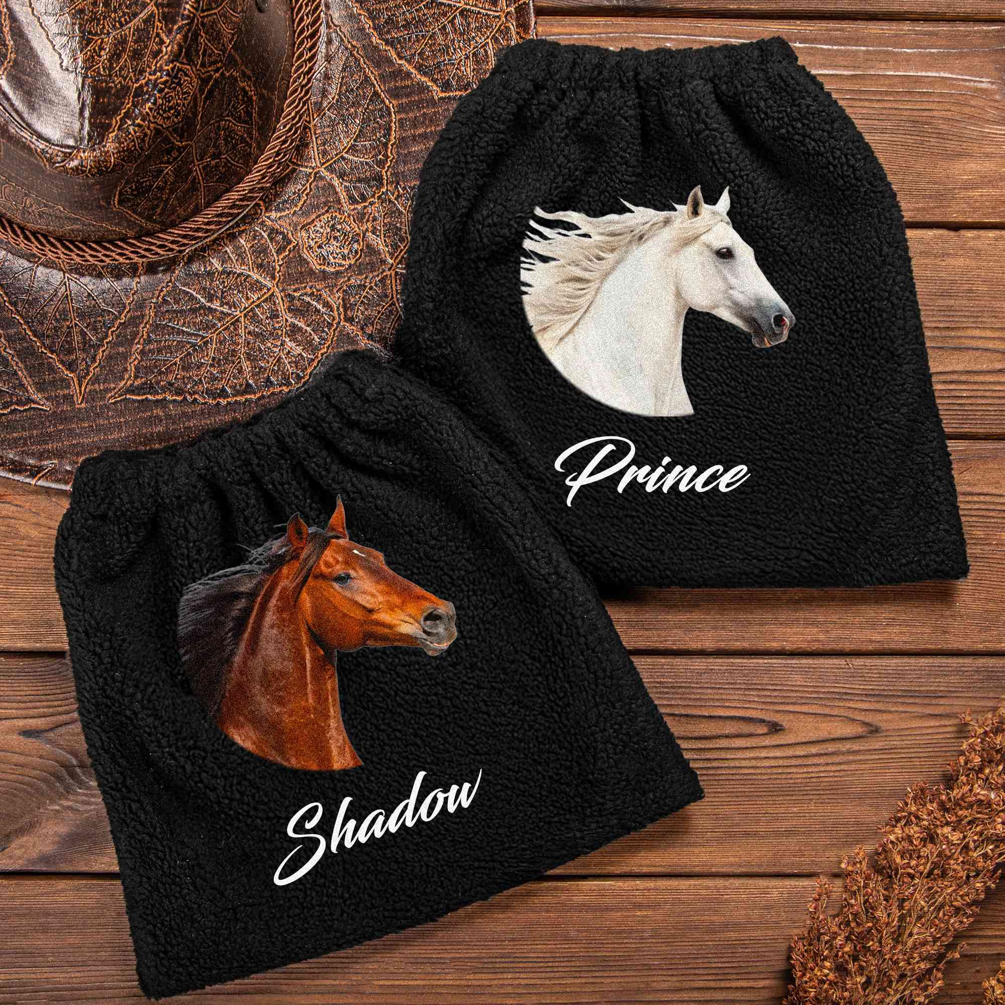 | Estilo | Fundas elásticas personalizadas de forro polar para estribos con foto de caballo y nombre |