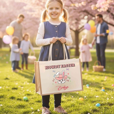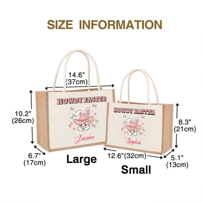 | Estilo | Bolsa de arpillera personalizada con el nombre del conejito de Pascua |