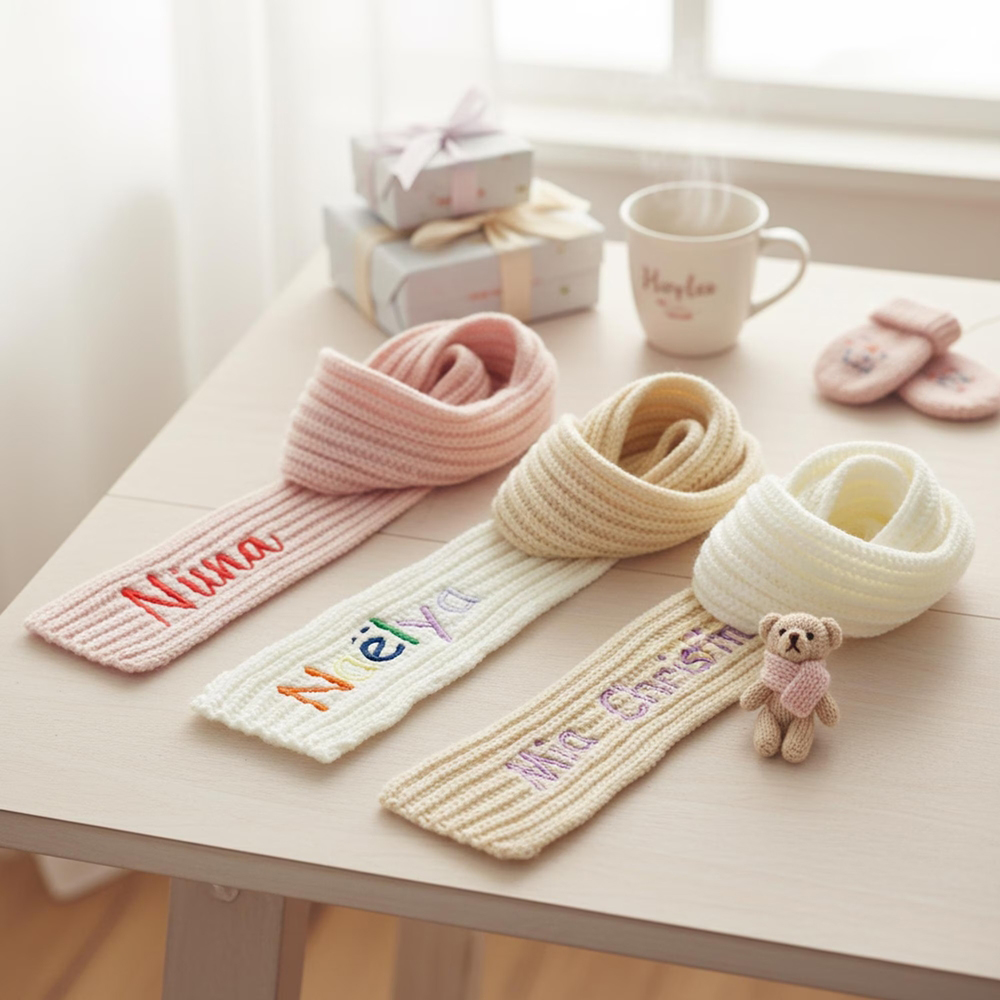 | Estilo | Bufanda de punto personalizada para niños con nombre bordado |