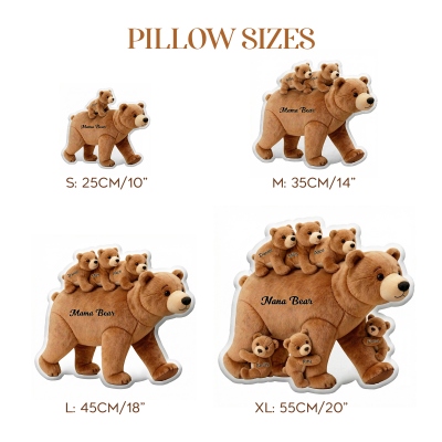 Diseño de Mamá Osa y Cachorros : Este cojín decorativo presenta una tierna mamá osa rodeada de cachorros en un diseño de líneas limpias, que simboliza el amor, la protección y el vínculo familiar. La suave silueta en forma de oso añade un toque acogedor y entrañable a cualquier habitación.