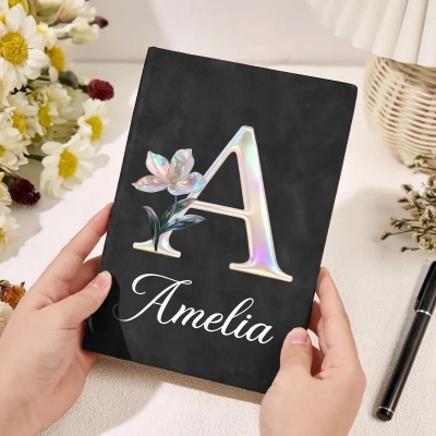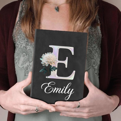 Diseño de flor de nacimiento con significado : Cada cuaderno luce una delicada flor de nacimiento con efecto nácar, combinada con una elegante inicial opcional. El suave brillo y las líneas limpias le confieren un estilo refinado, personal y atemporal.