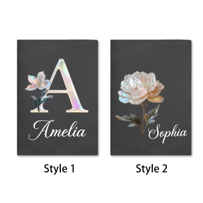 | Estilo | Libreta personalizada con flor de nacimiento efecto nácar y nombre |