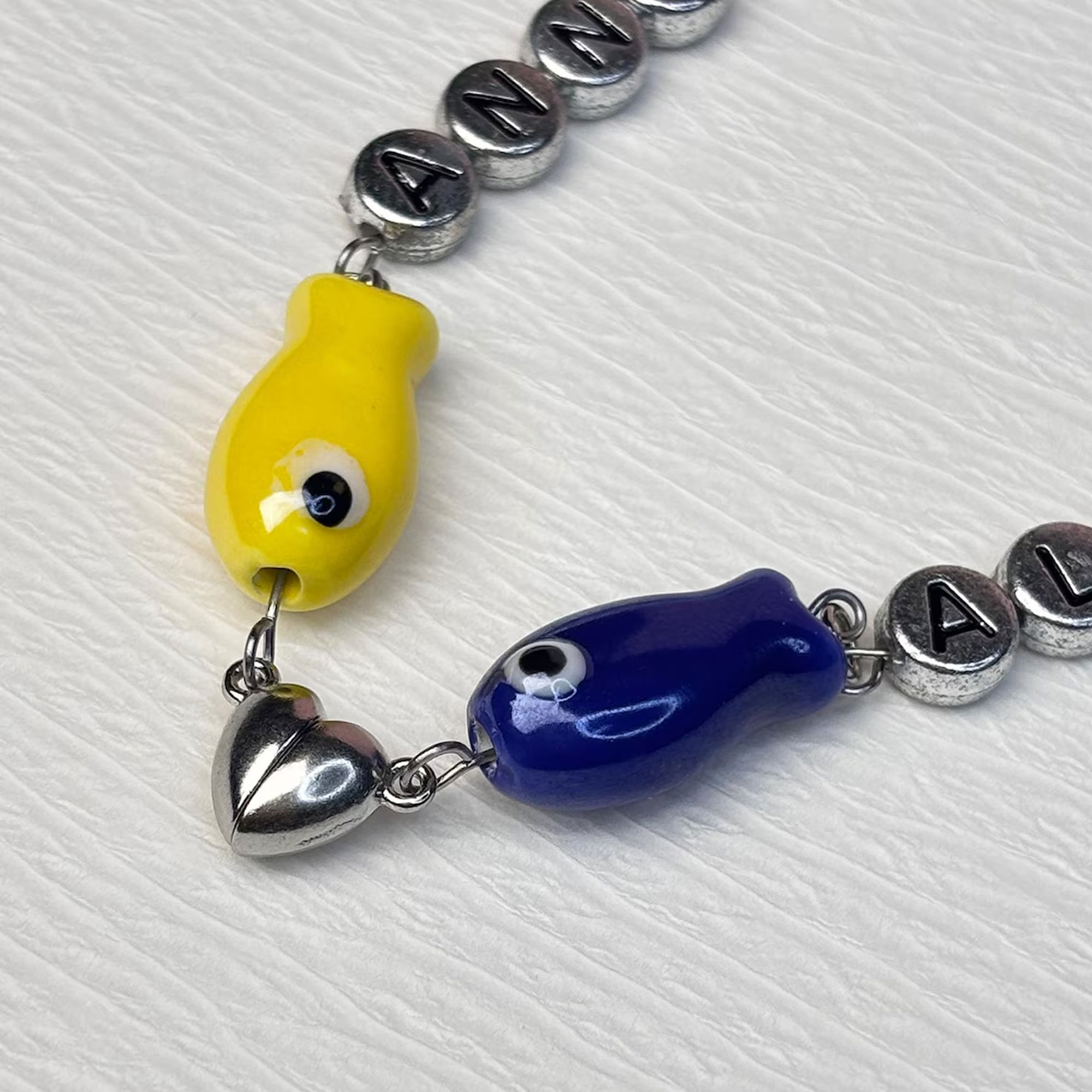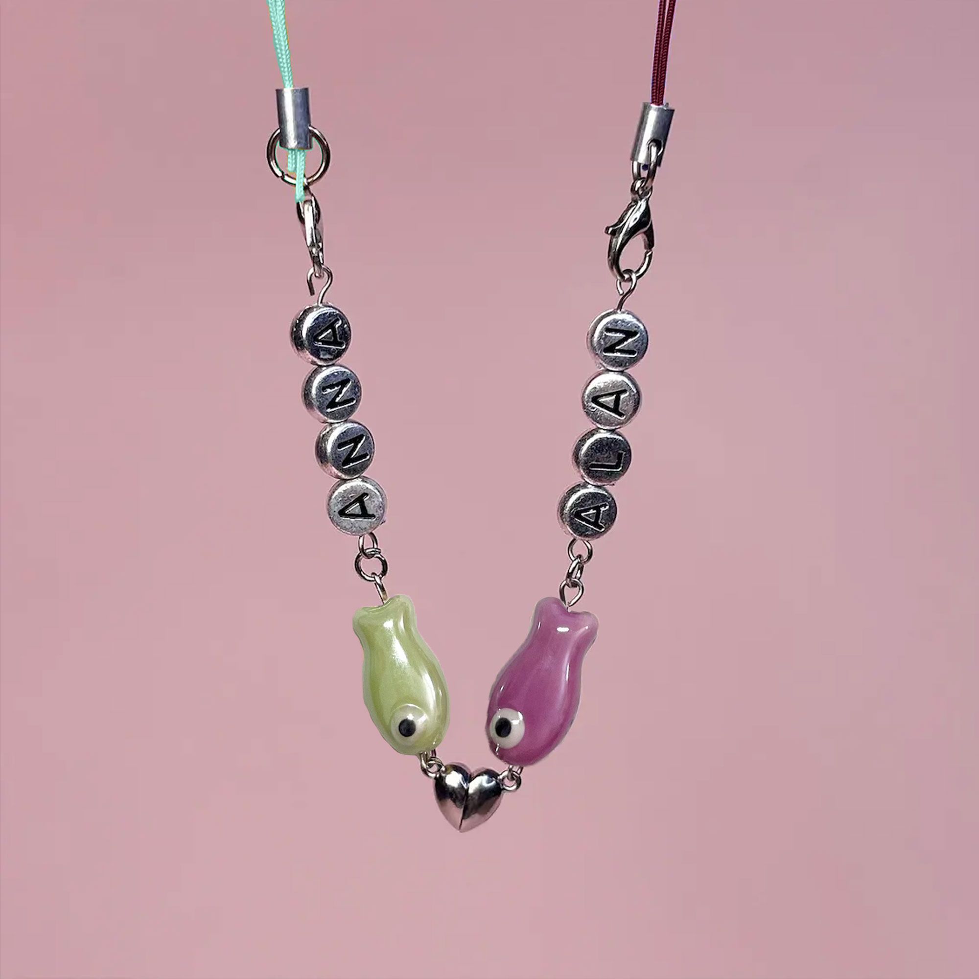 Llaveros magnéticos de cerámica con forma de pez y corazón con cuentas y nombre personalizado
