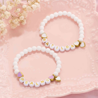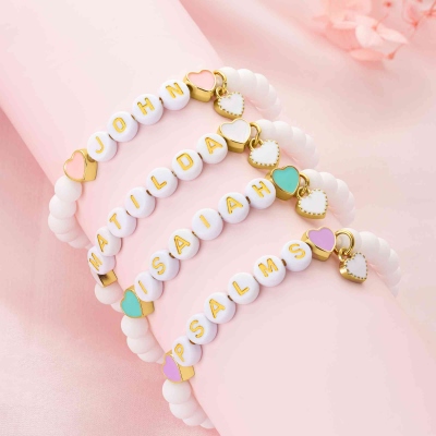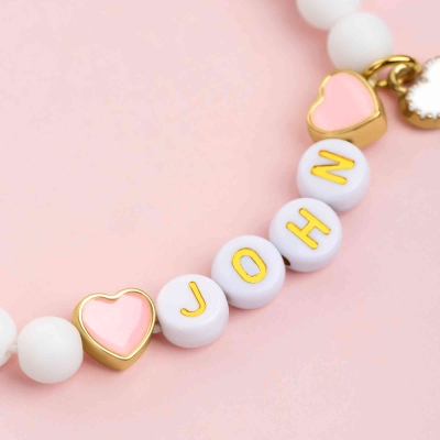| Estilo | Pulsera personalizada con dije de corazón y cuentas con nombre |