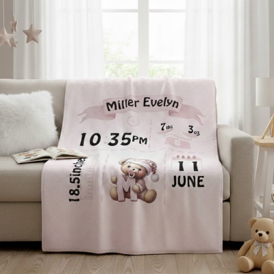 | Estilo | Manta personalizada con nombre y diseño de oso para el nacimiento del bebé |