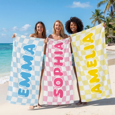 Diseño personalizado con la flor de nacimiento : Cada toalla luce una delicada flor de nacimiento junto con un nombre personalizado, creando un estilo fresco y personal que destaca en la playa o junto a la piscina. El diseño floral añade un toque suave y elegante inspirado en la naturaleza y el ambiente veraniego.